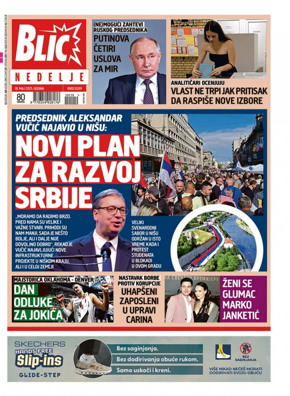 Pogledajte šta na naslovnim stranama donose dnevne novine u Srbiji u izdanju za nedelju, 18. maj