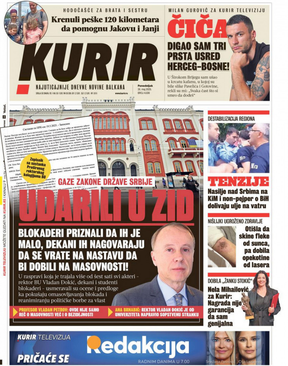 Pogledajte šta na naslovnim stranama donose dnevne novine u Srbiji u izdanju za ponedeljak, 26. maj
