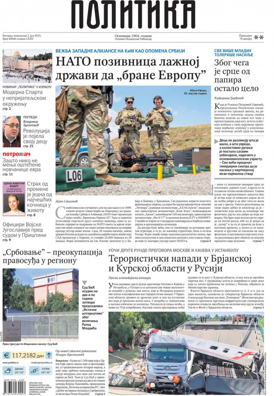 Naslovne strane dnevne štampe za ponedeljak, 2. jun