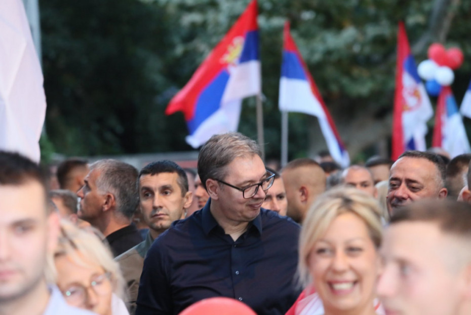 "Mi moramo da se izborimo za svoju zemlju, niko drugi se u naše ime neće izboriti, jer ništa se ne dešava samo od sebe. Kada imamo problem, onda svi moramo da se angažujemo i borimo za svoju zemlju, da bismo imali veće plate i penzije, da bismo živeli bolje i da bismo zaustavili pokušaj razaranja i daljeg propadanja Srbije", naglasio je Vučić.
