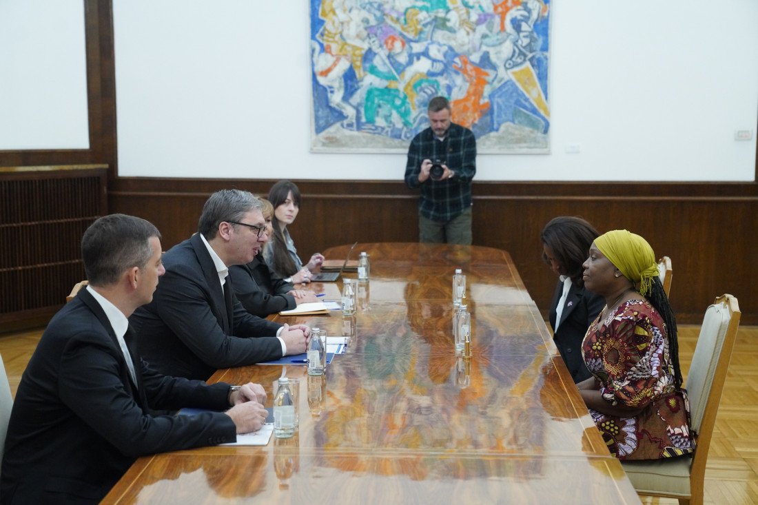 Predsednik Republike Srbije Aleksandar Vučić sastao se sa ministarkom spoljnih poslova Republike Liberije Sarom Bajsolou Njanti.