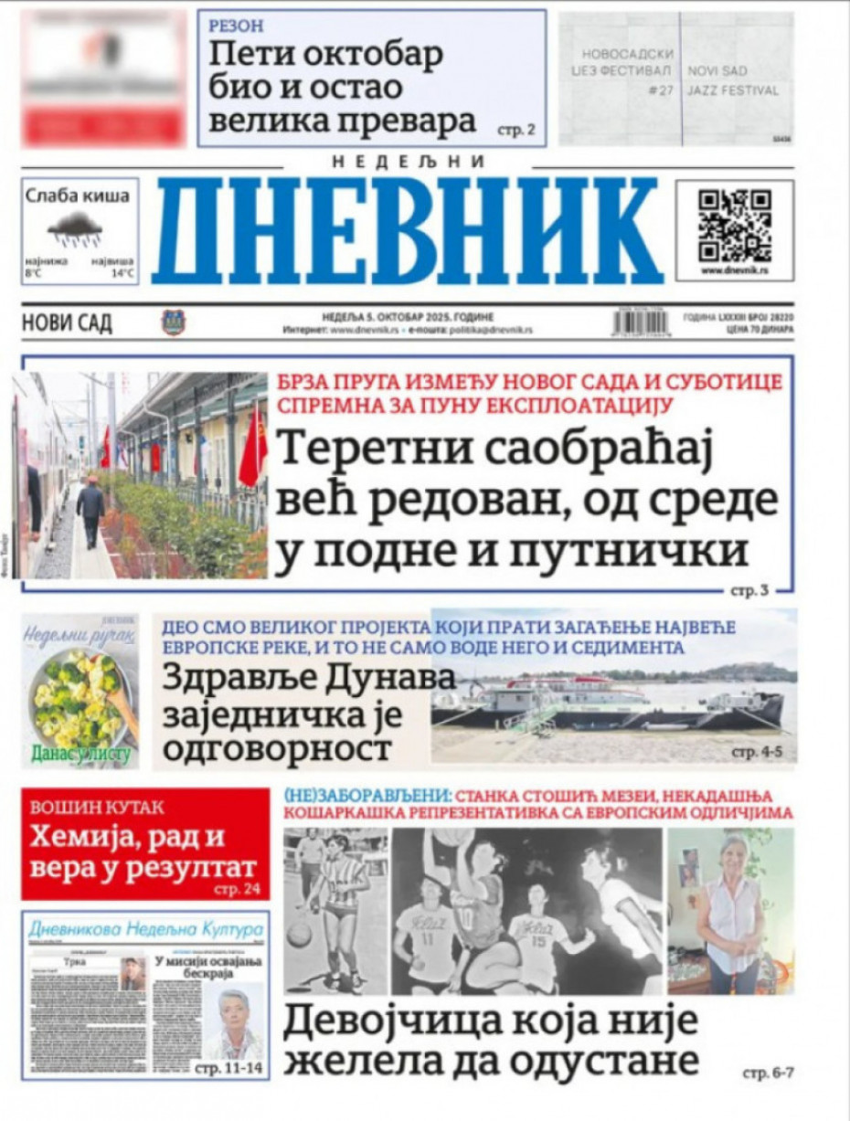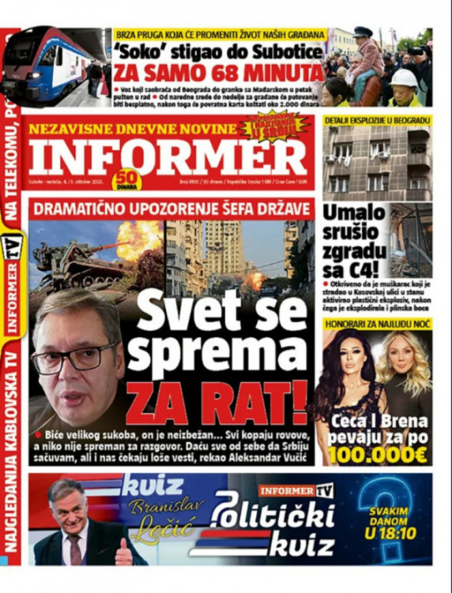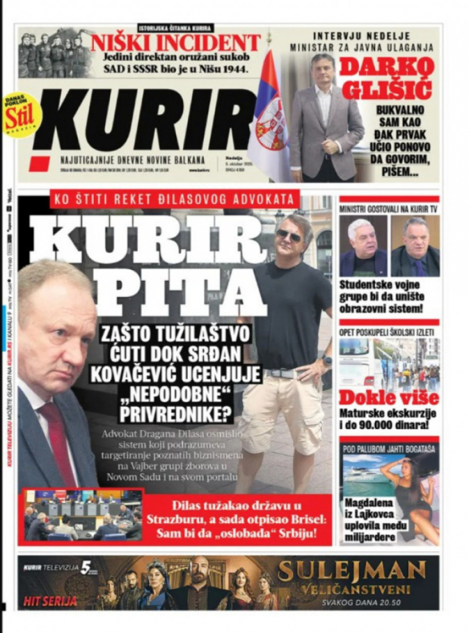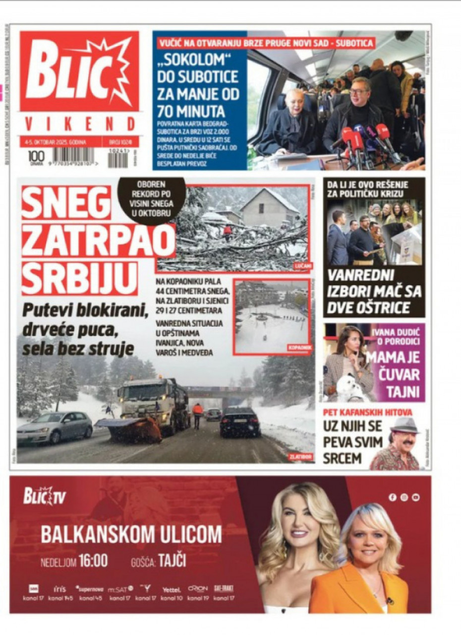 Pogledajte šta na naslovnim stranama donose dnevne novine u Srbiji u izdanju za nedelju, 5. oktobar
