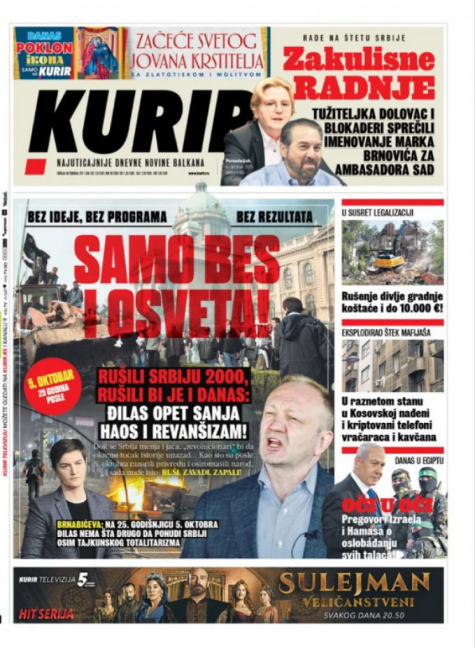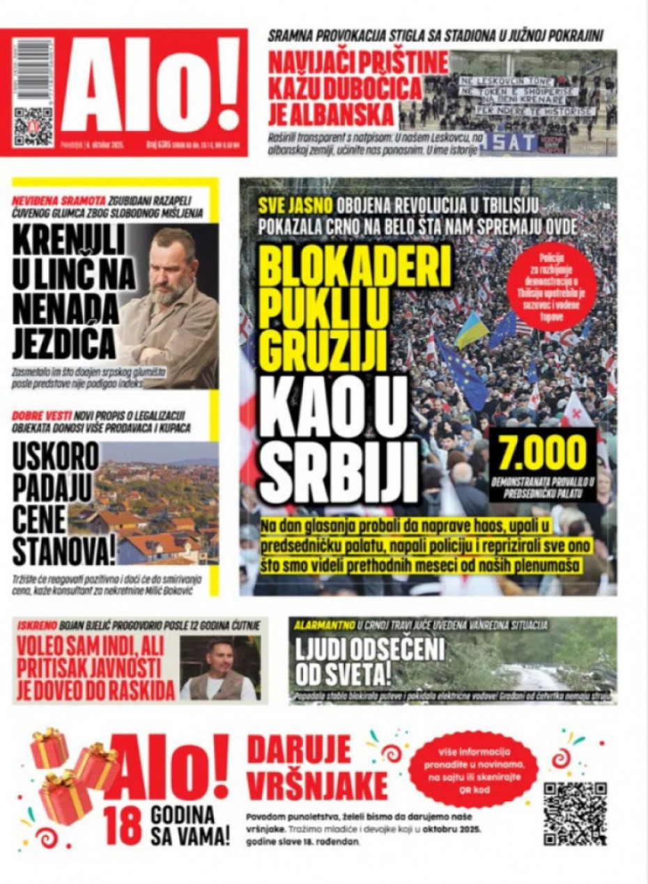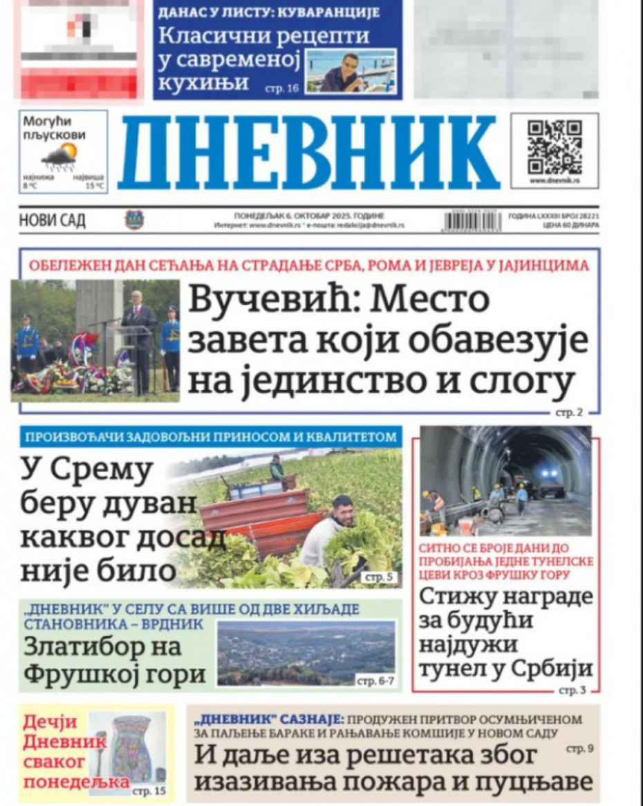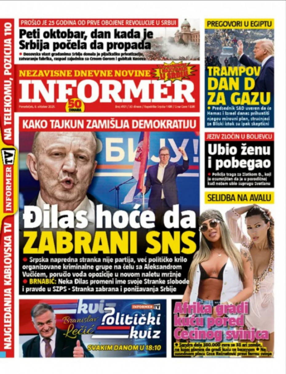 Pogledajte šta na naslovnim stranama donose dnevne novine u Srbiji u izdanju za ponedeljak, 6.oktobar