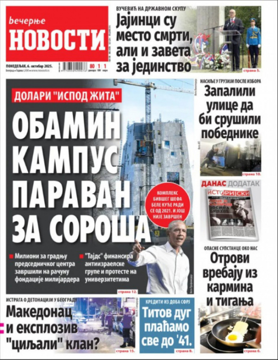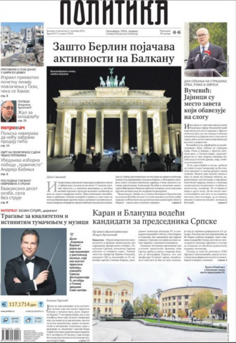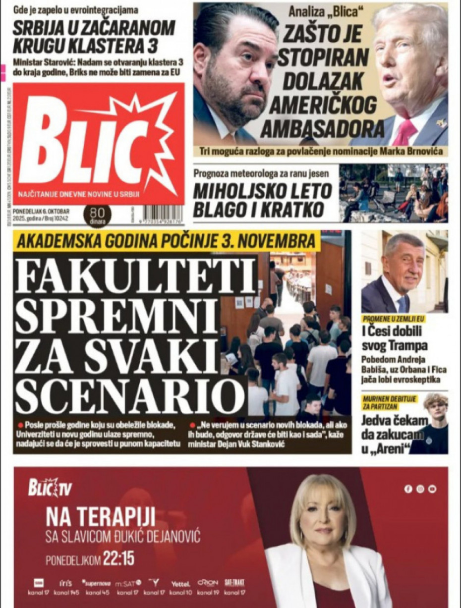 Naslovne strane dnevne štampe za ponedeljak, 6. oktobar