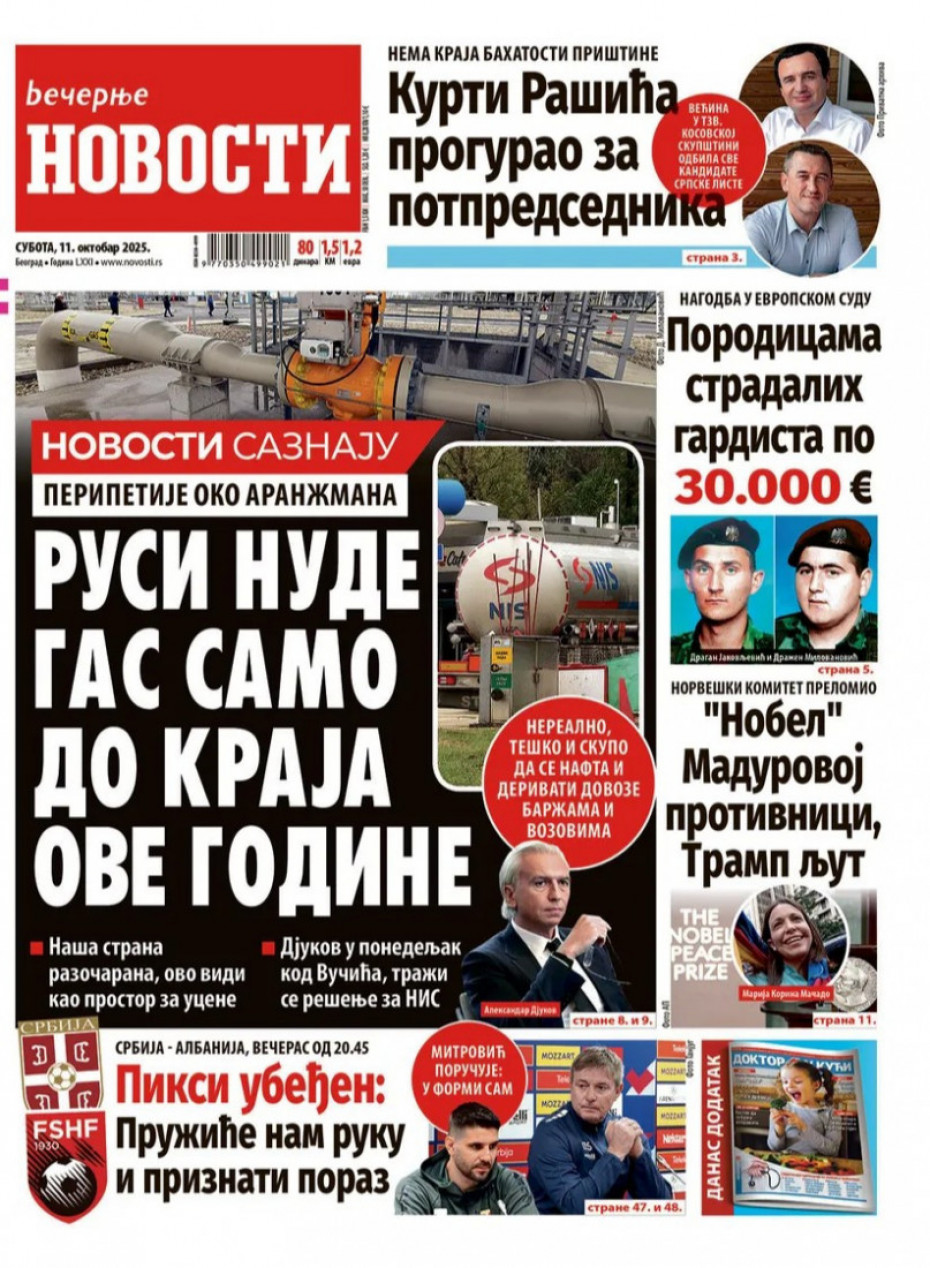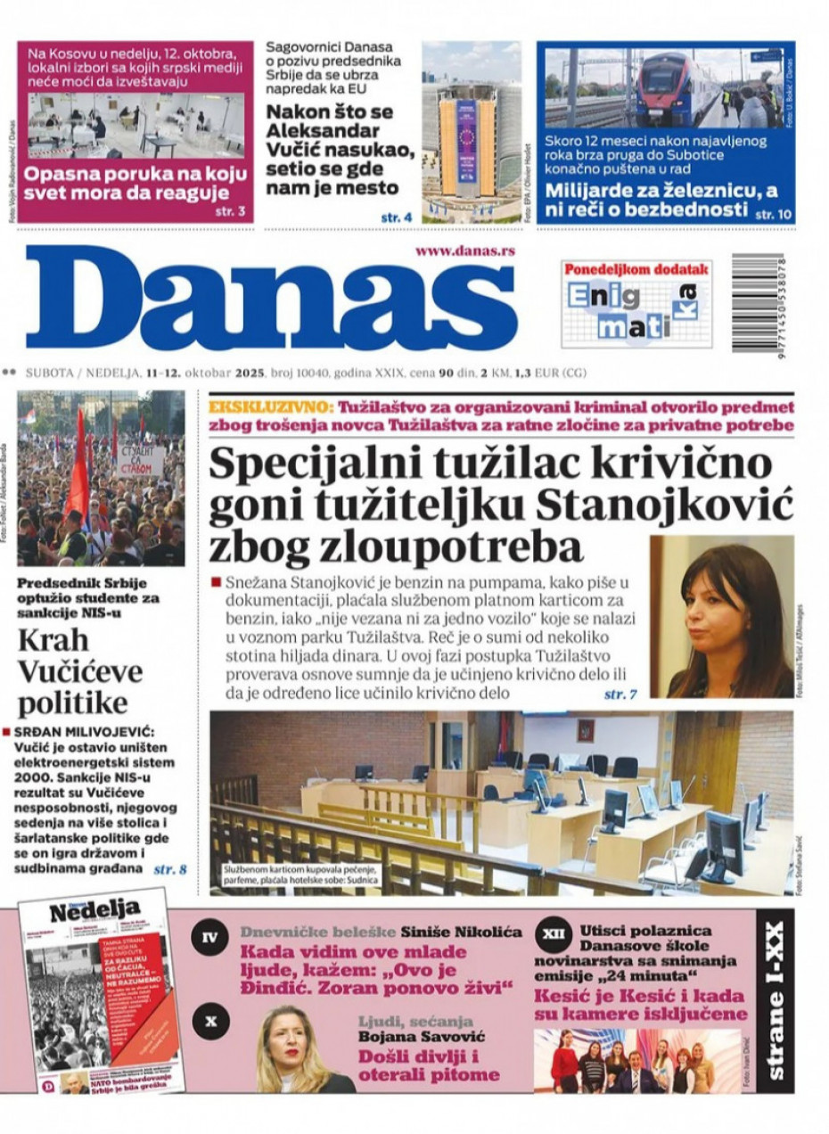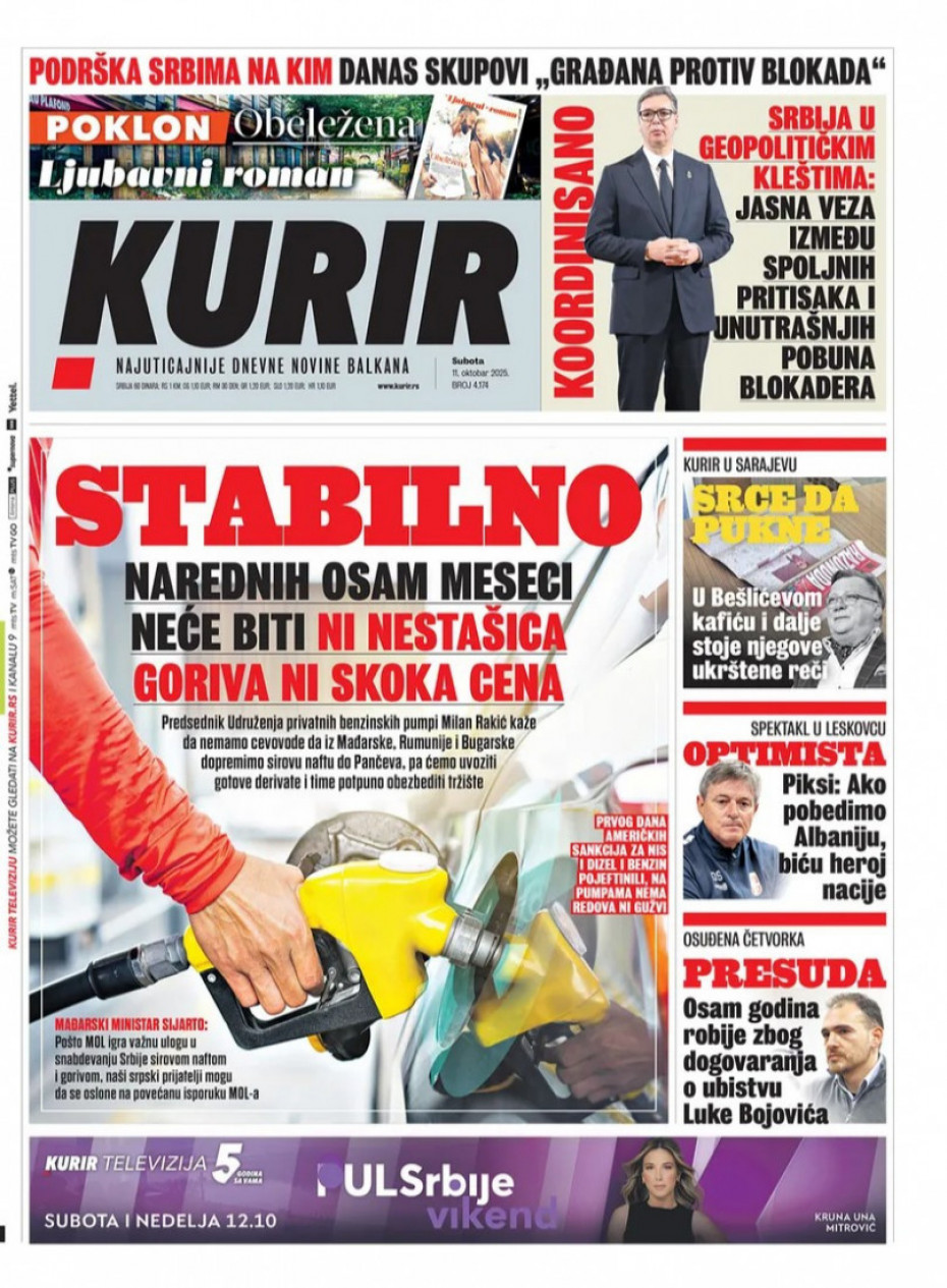 Naslovna Srbija Politika Politika Naslovne strane dnevne štampe za subotu, 11. oktobar Komentari Profimedia, Logo - Copyright Profimedia, Logo Autor: Euronews Srbija 10/10/2025 - 20:43 Podeli veličina teksta Aa Aa Pogledajte šta na naslovnim stranama donose dnevne novine u Srbiji u izdanju za subotu, 11. oktobar Promo Pogledaj galeriju Promo Pogledaj galeriju Promo Pogledaj galeriju Promo Pogledaj galeriju Promo Pogledaj galeriju Promo Pogledaj galeriju Promo Pogledaj galeriju Promo Pogledaj galeriju Promo Pogledaj galeriju Više o... Naslovne strane Naslovne strane sutrašnjih novina Sutrašnje naslovnice Dnevna štampa Top tagovi Euronews Montenegro Kosovo i Metohija Rat u Ukrajini Kriza na Bliskom istoku