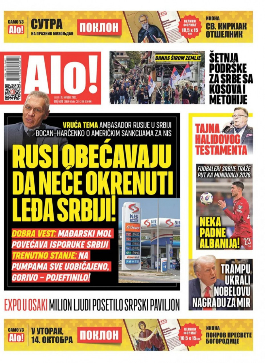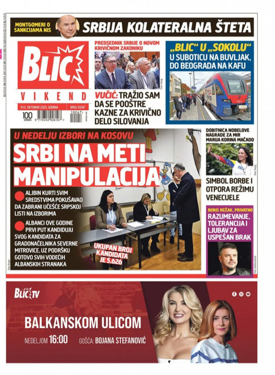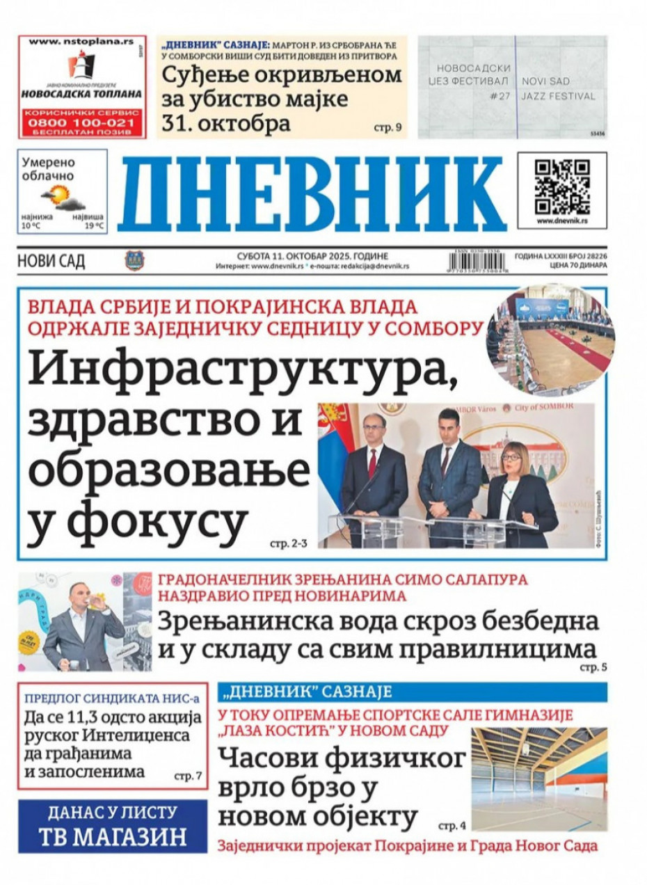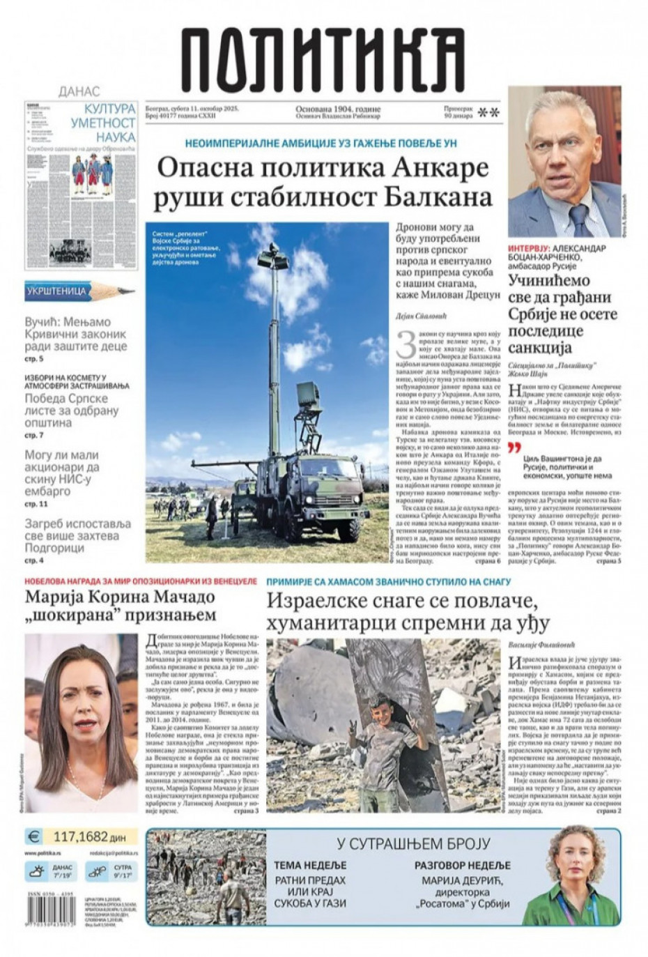 Naslovna Srbija Politika Politika Naslovne strane dnevne štampe za subotu, 11. oktobar Komentari Profimedia, Logo - Copyright Profimedia, Logo Autor: Euronews Srbija 10/10/2025 - 20:43 Podeli veličina teksta Aa Aa Pogledajte šta na naslovnim stranama donose dnevne novine u Srbiji u izdanju za subotu, 11. oktobar Promo Pogledaj galeriju Promo Pogledaj galeriju Promo Pogledaj galeriju Promo Pogledaj galeriju Promo Pogledaj galeriju Promo Pogledaj galeriju Promo Pogledaj galeriju Promo Pogledaj galeriju Promo Pogledaj galeriju Više o... Naslovne strane Naslovne strane sutrašnjih novina Sutrašnje naslovnice Dnevna štampa Top tagovi Euronews Montenegro Kosovo i Metohija Rat u Ukrajini Kriza na Bliskom istoku