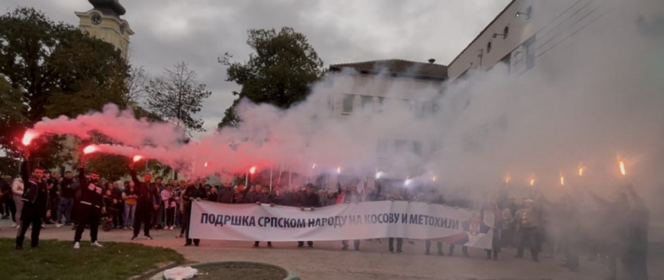 U naselju Ratina u Kraljevu, građani nose transparent "Kosovo je molitva koja ne prestaje".