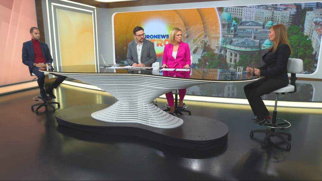 Predsednica Evropske komisije Ursula fon der Lajen boravi u poseti Srbiji, a danas je imala sastanak sa predsednikom naše zemlje Aleksandrom Vučićem. O tome šta poseta Ursule fon der Lajen znači za Srbiju pričali su gosti Euronews Srbija. Aleksandra Joksimović iz Centra za spoljnu politiku smatra da je Srbija sišla sa lestvice favorita za ulazak u EU, dok Đorđe Dimitrov iz Centra za evropske politike ističe važnost sastanka Fon der Lajen sa organizacijama civilnog društva.