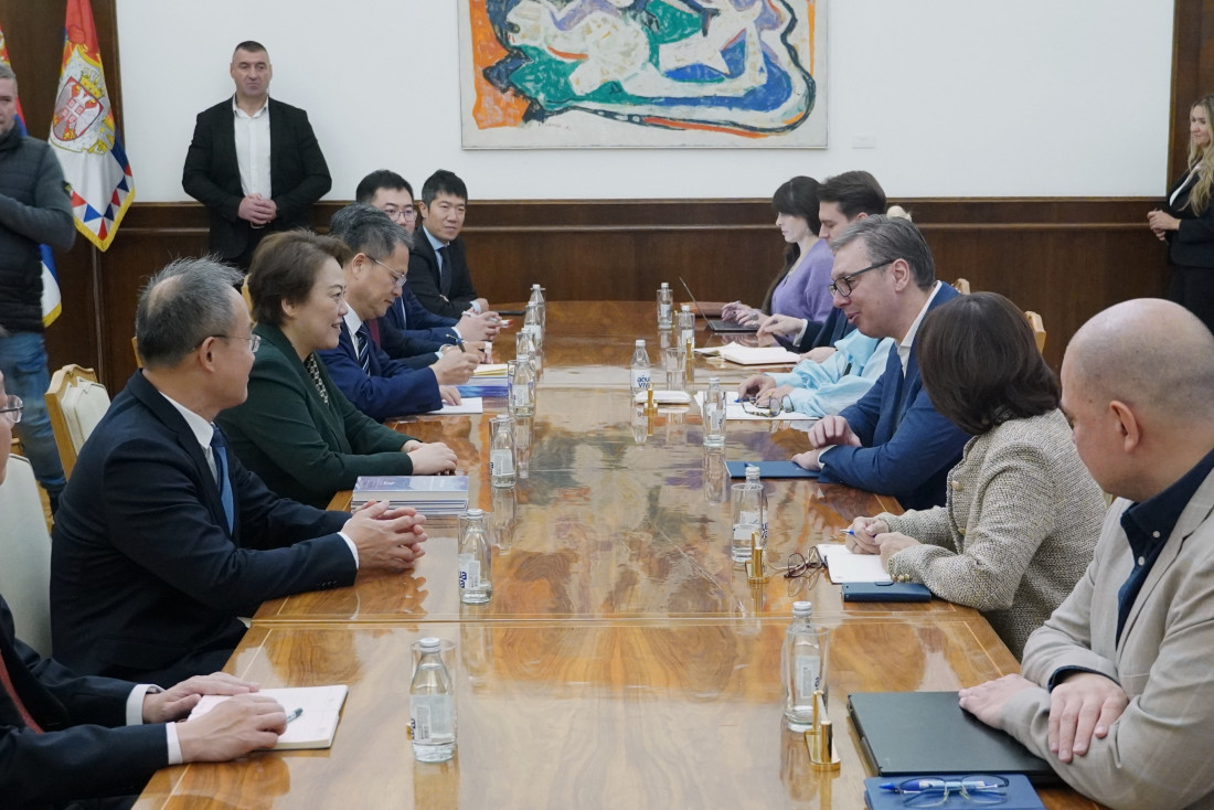 Predsednik Srbije Aleksandar Vučić sastao se sa članovima delegacije Kineskog instituta za međunarodne studije na čelu sa predsednicom tog instituta i generalnim sekretarom Istraživačkog centra diplomatske misli Si Đinpinga, Čen Bo, kojoj je zahvalio na trajnom doprinosu razvoju sveobuhvatnog strateškog partnerstva Srbije i Kine.