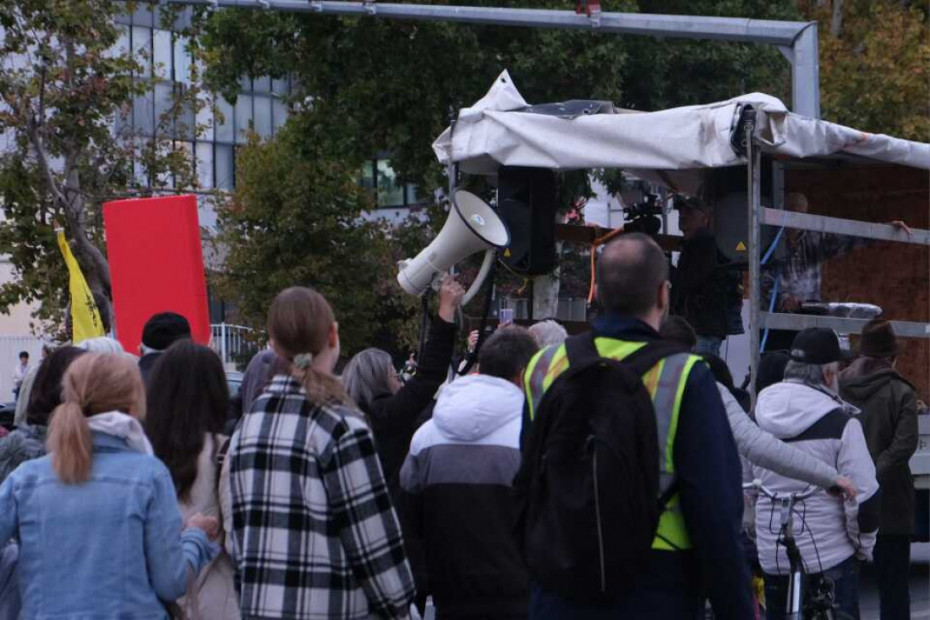 Kako su objasnili demonstranti, performans simbolizuje "medijski mrak i paljenje svetla".