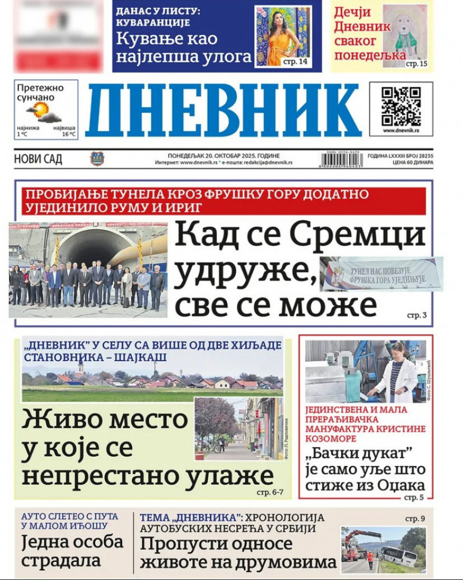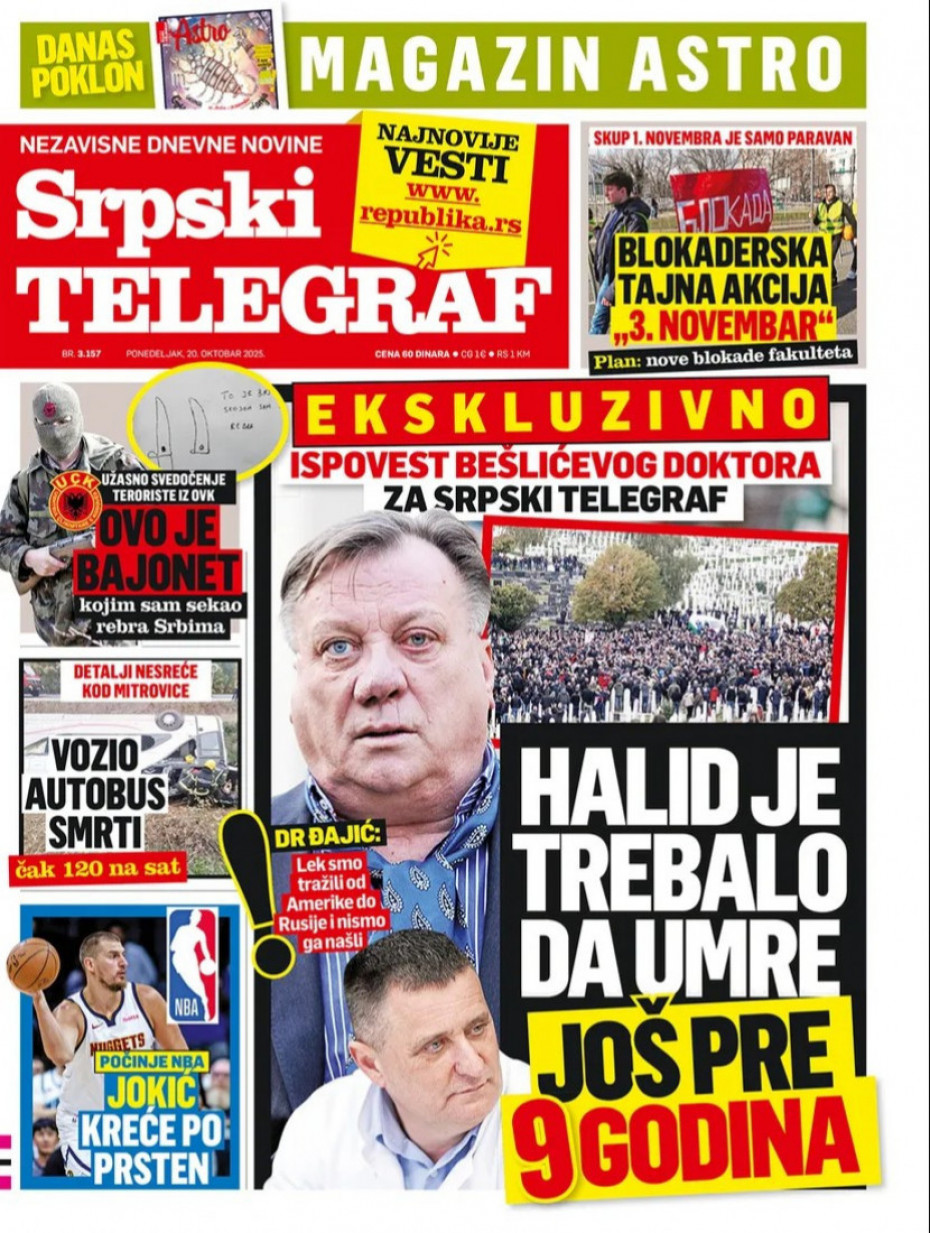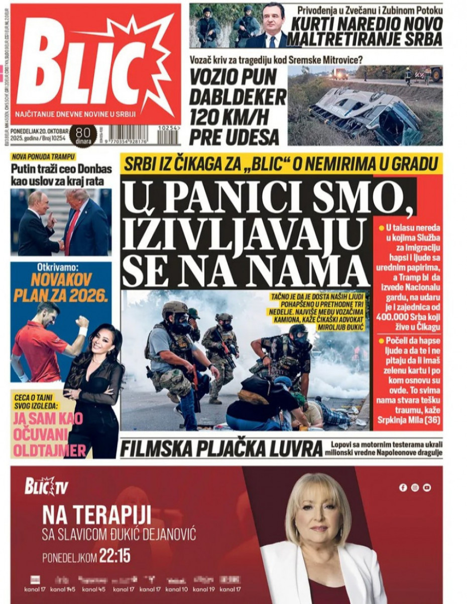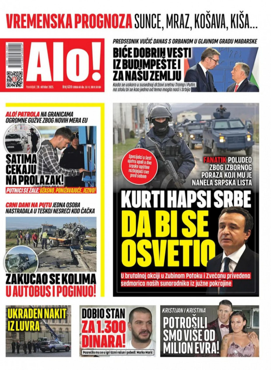 Pogledajte šta na naslovnim stranama donose dnevne novine u Srbiji u izdanju za ponedeljak, 20. oktobar
