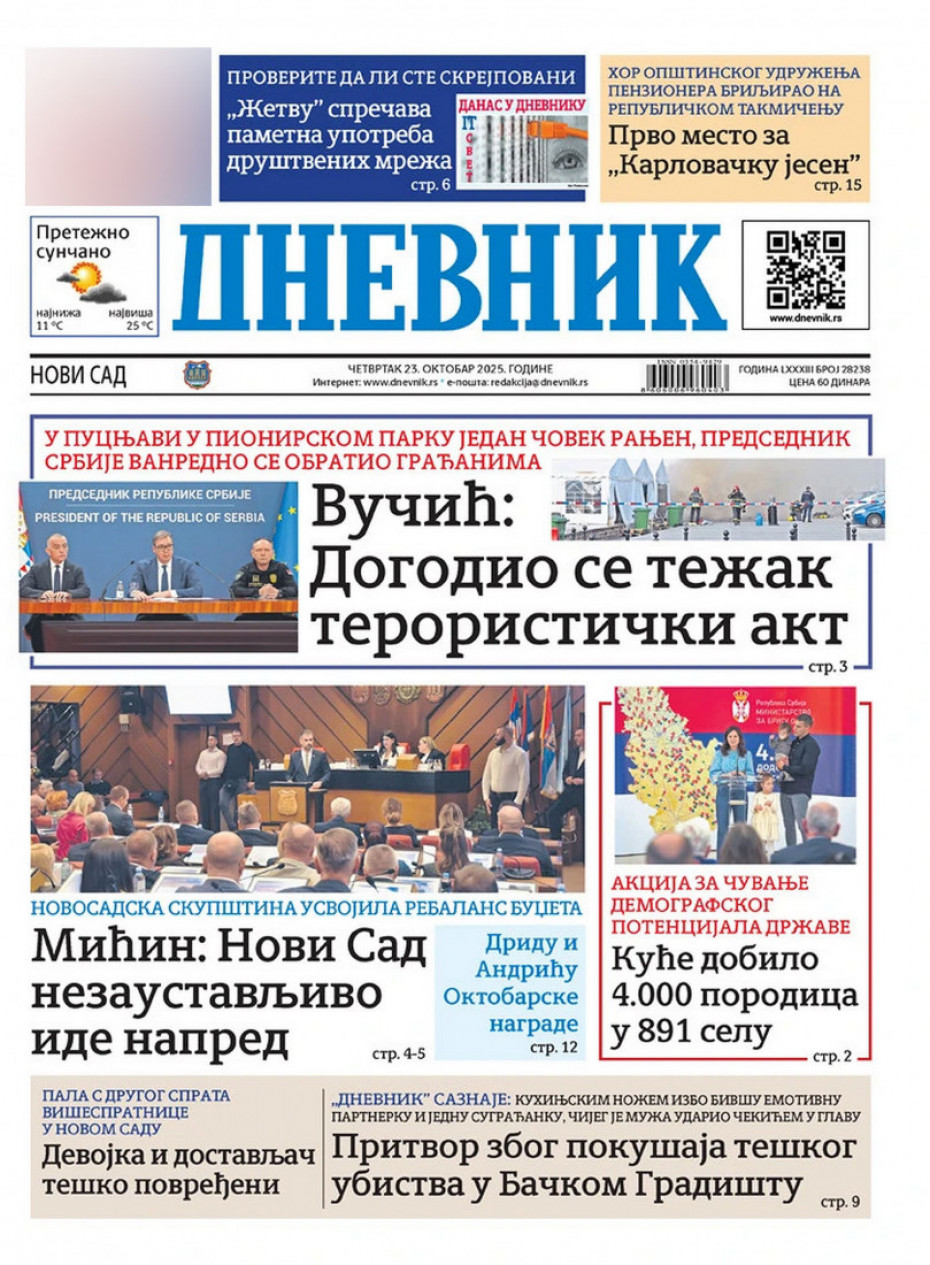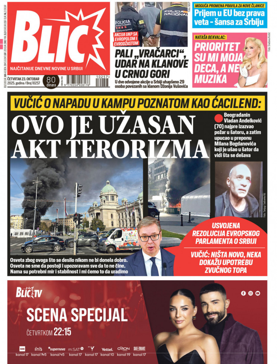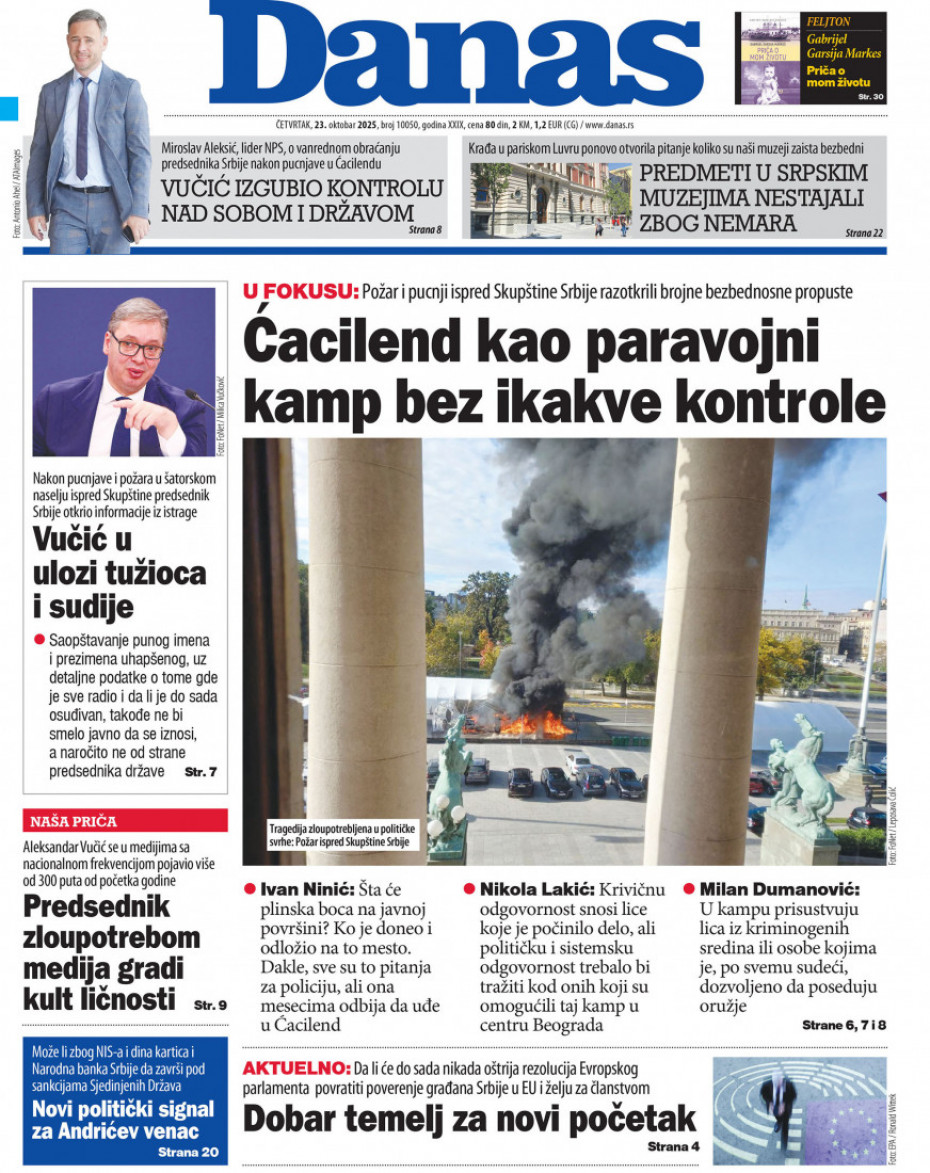 Pogledajte šta na naslovnim stranama donose dnevne novine u Srbiji u izdanju za četvrtak, 23. oktobar