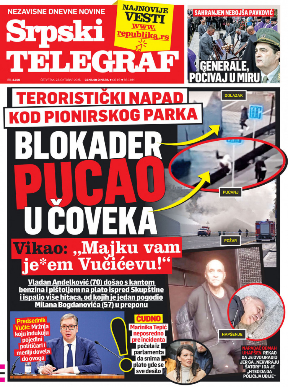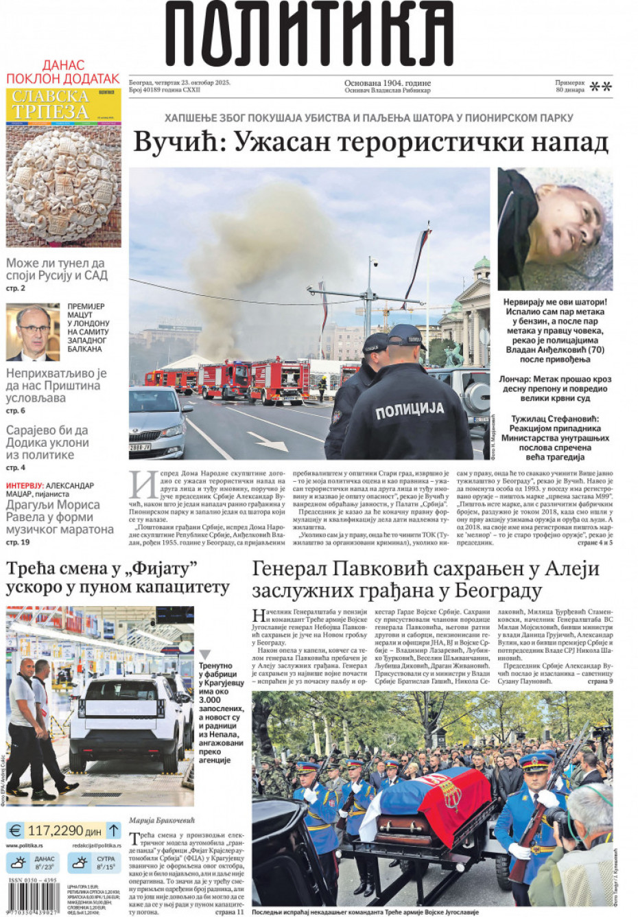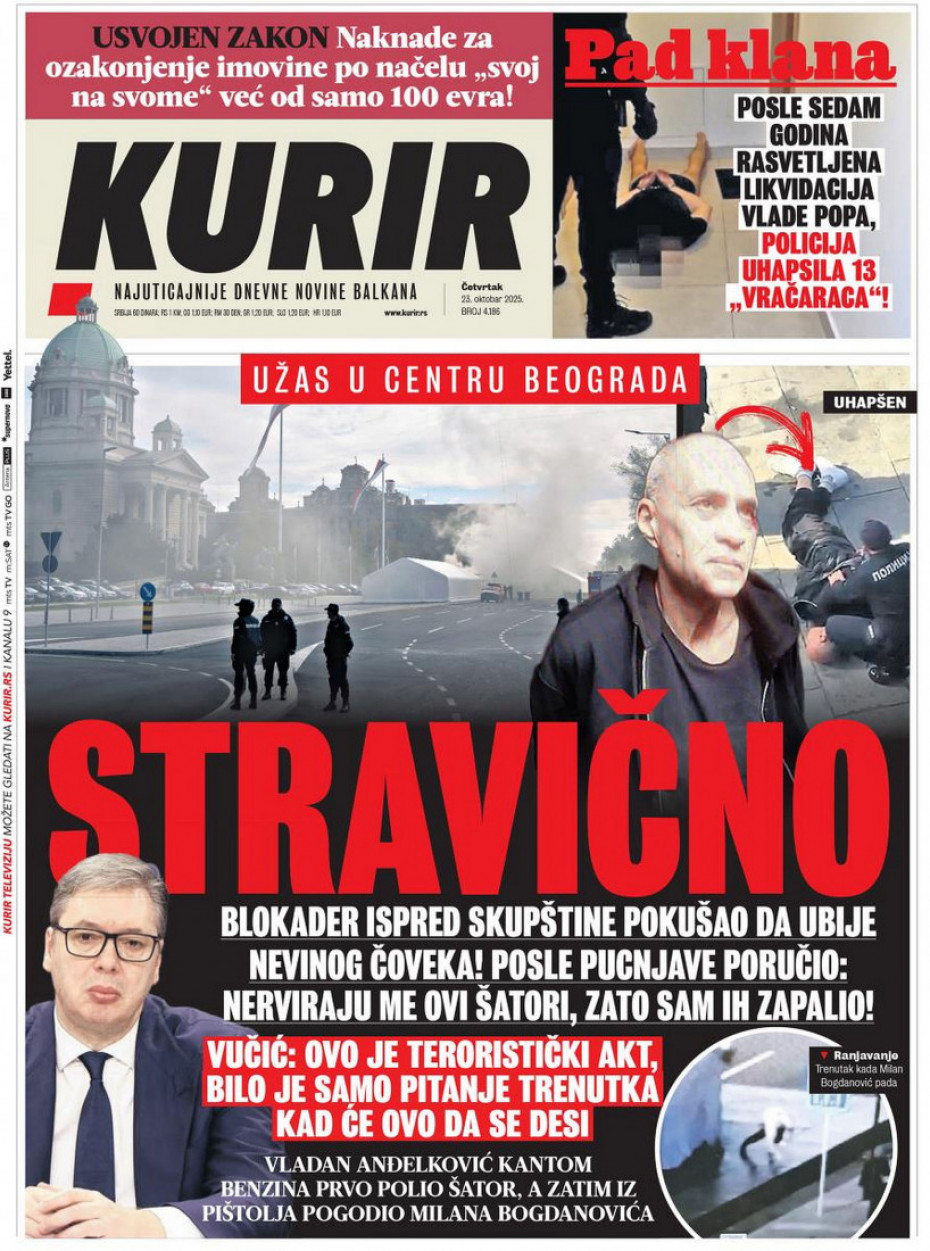 Naslovne strane dnevne štampe za četvrtak, 23. oktobar