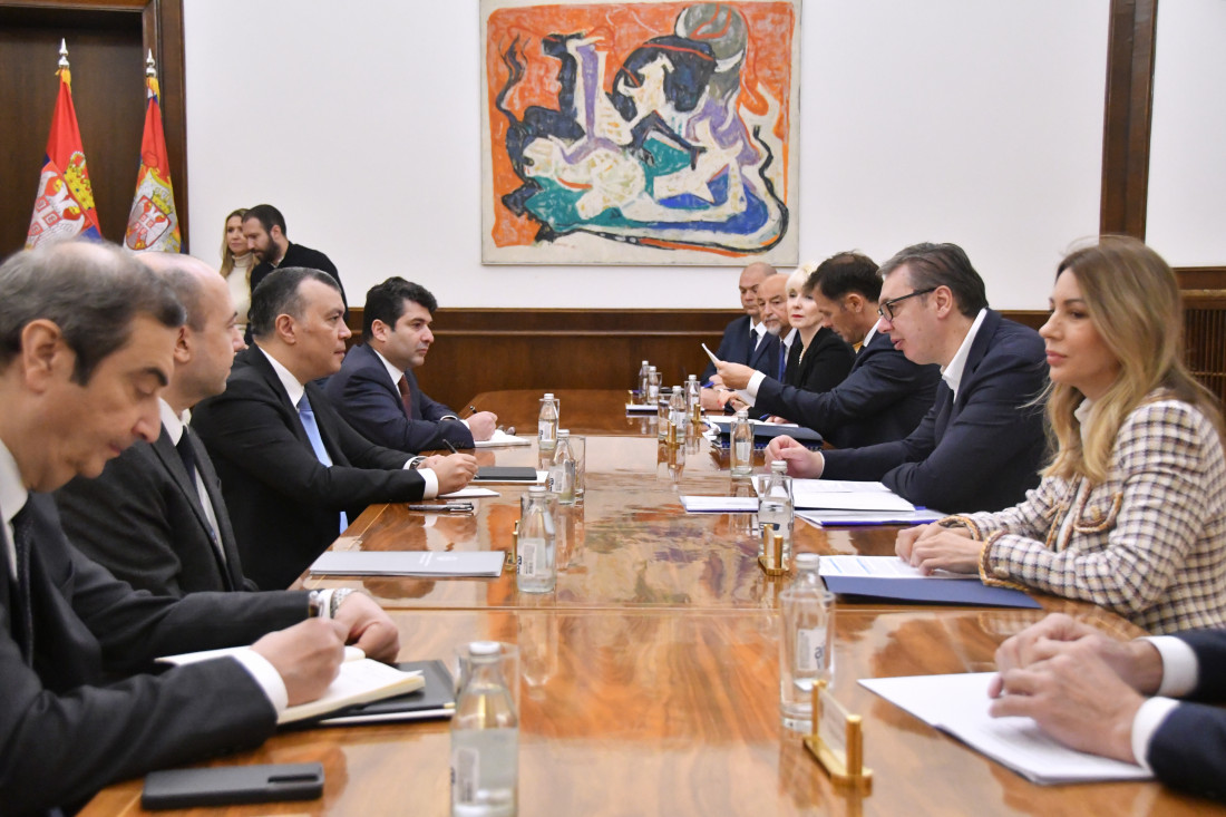 Predsednik Republike Srbije Aleksandar Vučić sastao se sa ministrom finansija Republike Azerbejdžan Sahilom Babajevim, a u razgovoru je istakao da je Srbija odlučna da nastavi još snažnije da razvija i unapređuje uzajamno korisnu saradnju sa Azerbejdžanom, posebno u oblastima ekonomije, energetike, odbrane i putne infrastrukture.