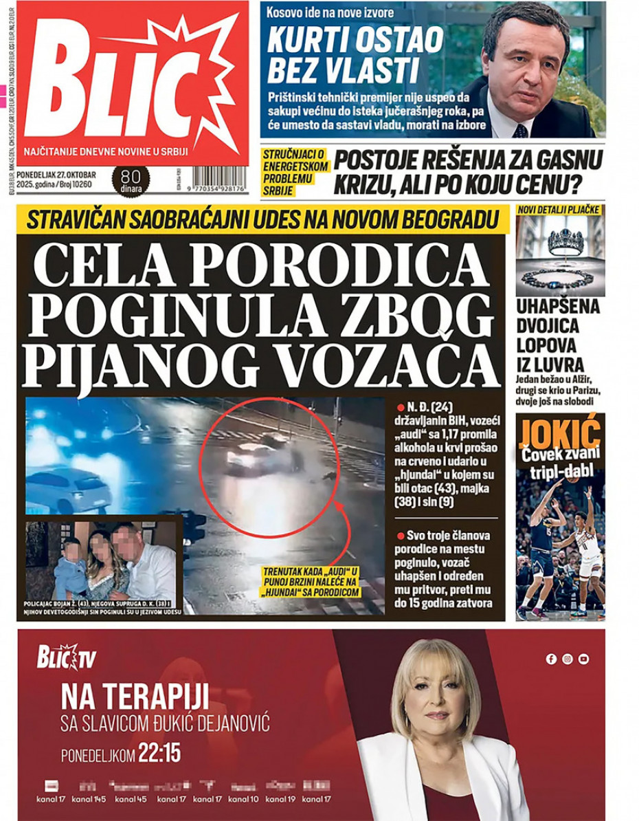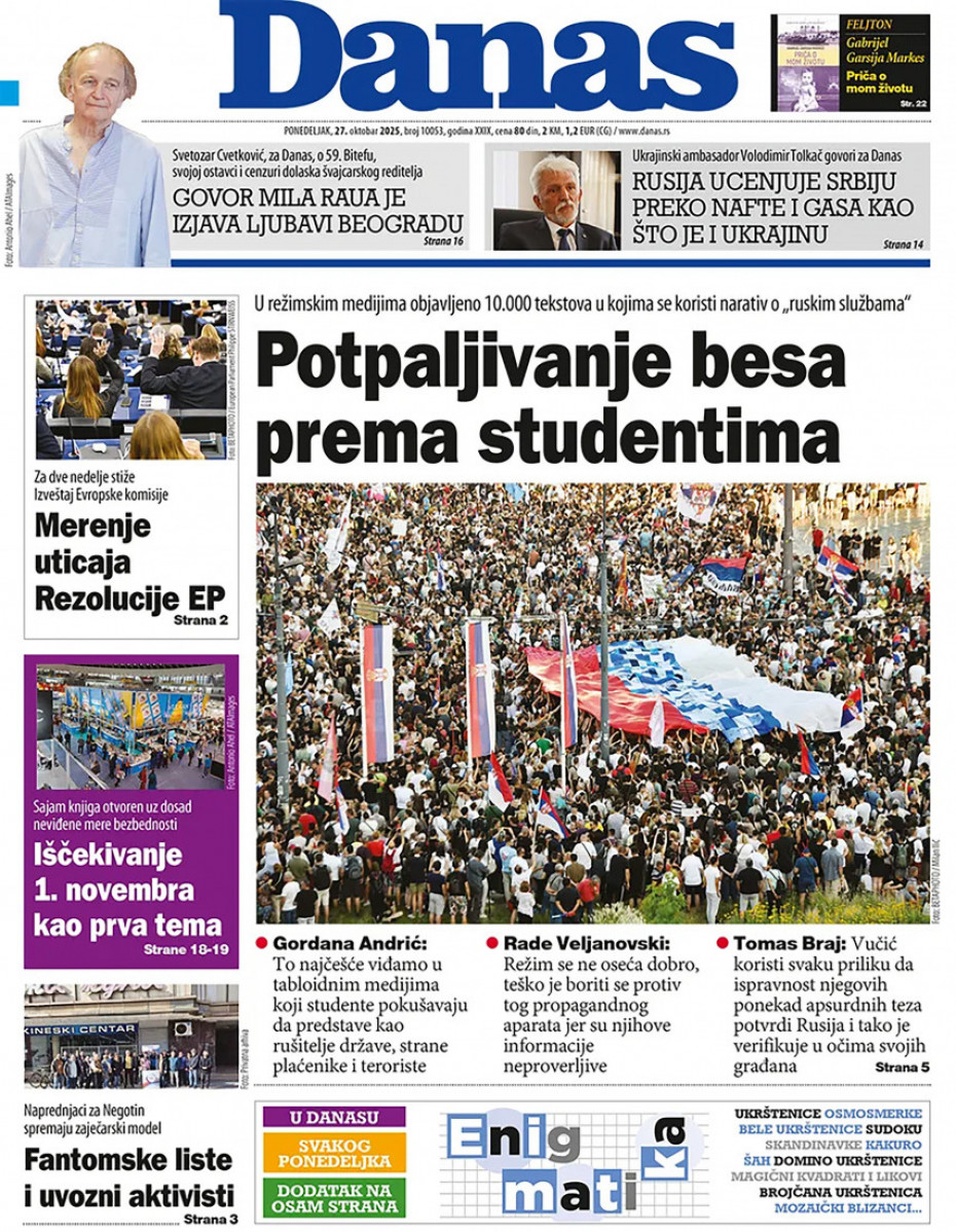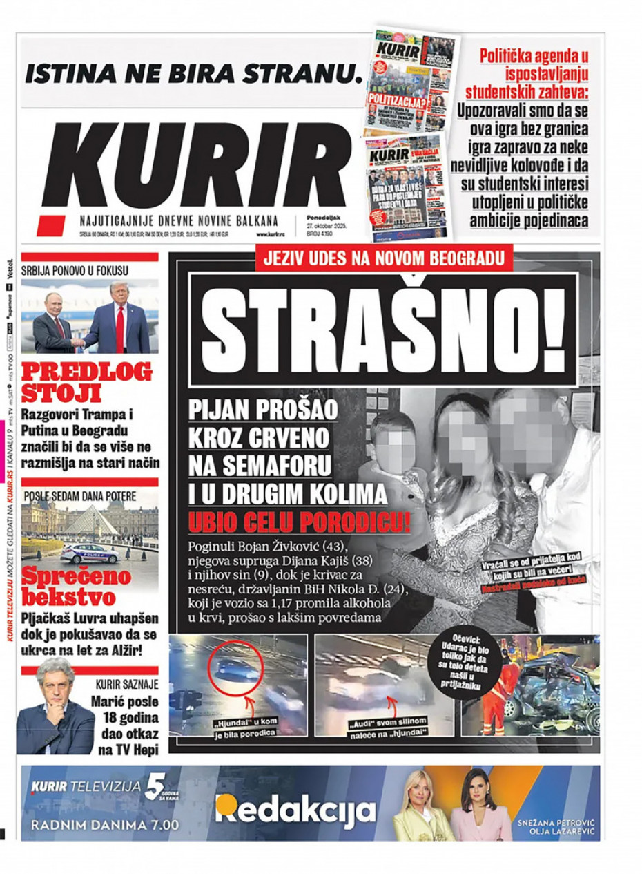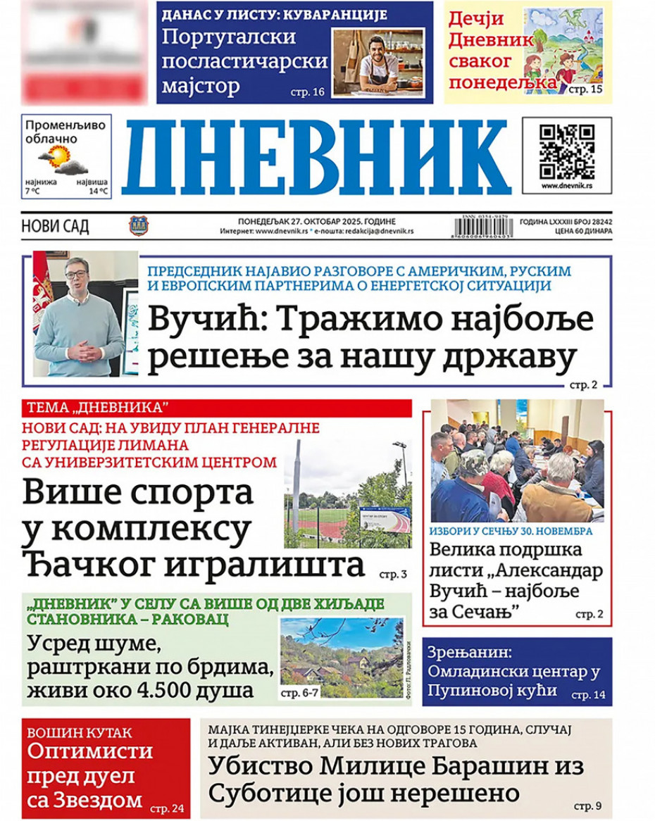 Pogledajte šta na naslovnim stranama donose dnevne novine u Srbiji u izdanju za ponedeljak, 27. oktobar