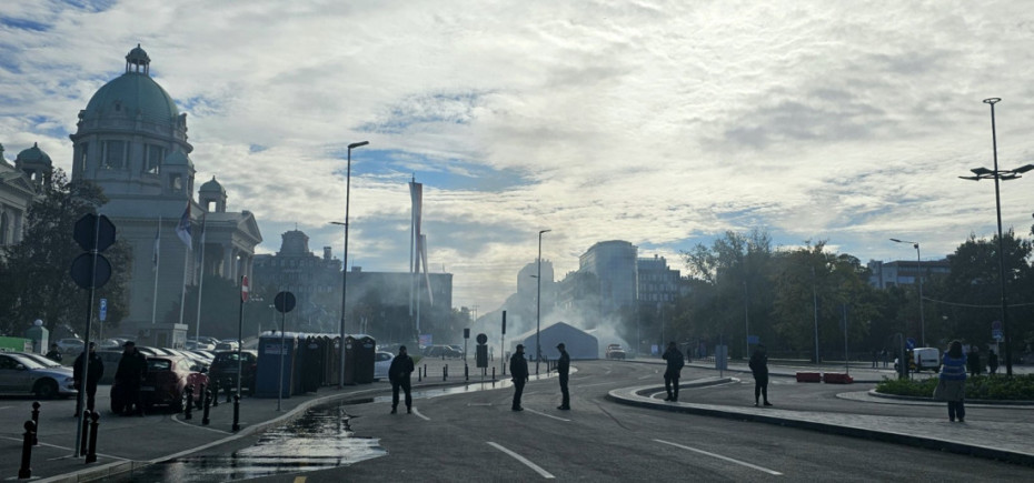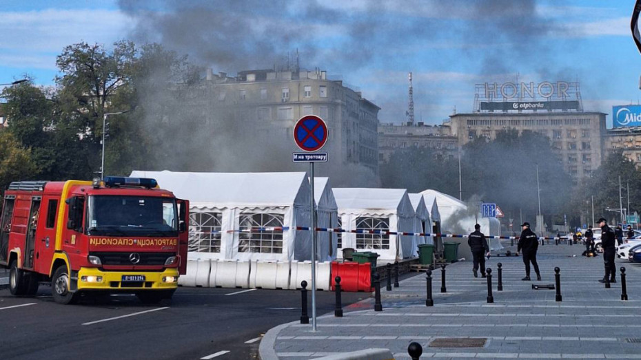 Plamen se potom sa ovog šatora proširio i na susedne šatore i predmete koji su se nalazili u njima, usled čega je došlo i do oštećenja vozila marke "Škoda Oktavia" koje se nalazilo na službenom parkingu ispred Doma Narodne skupštine.