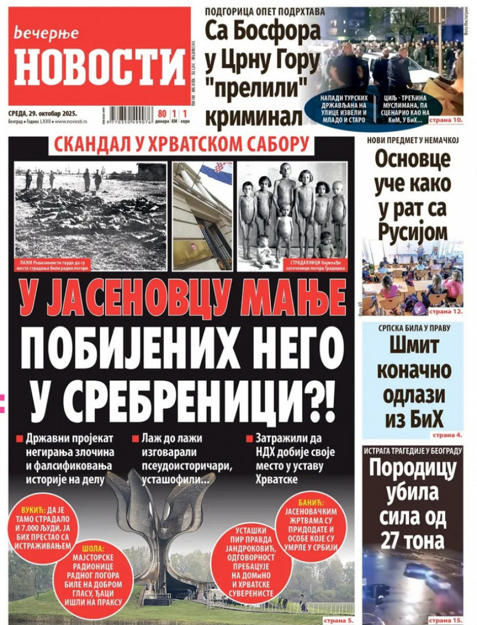 Naslovne strane dnevne štampe za sredu, 29. oktobar