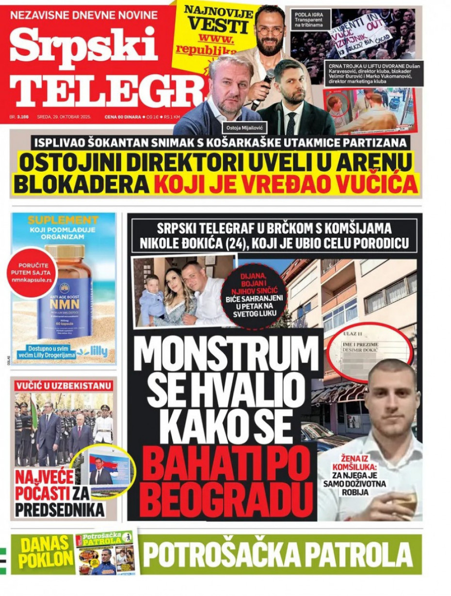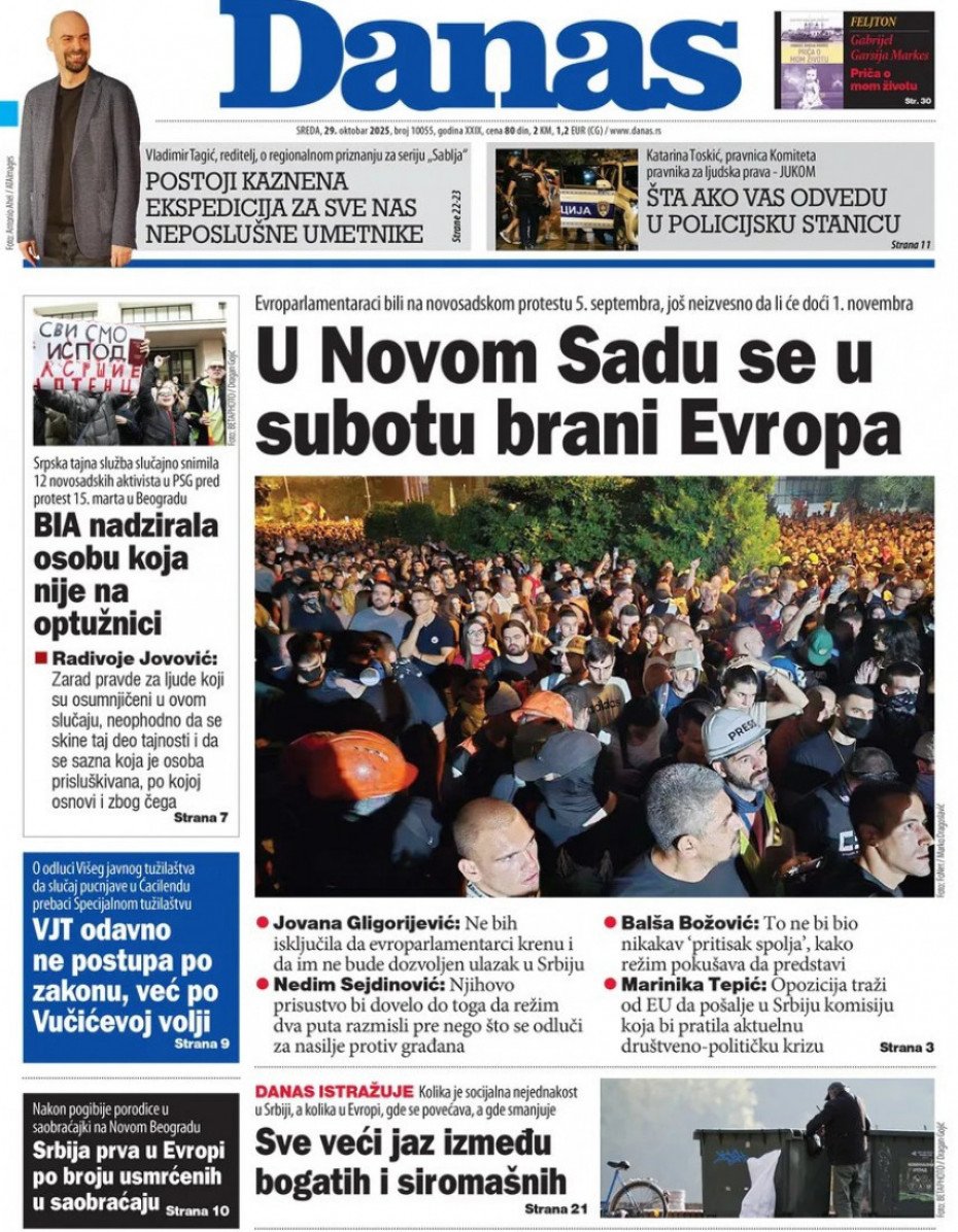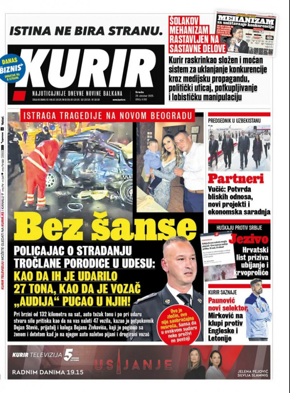 Pogledajte šta na naslovnim stranama donose dnevne novine u Srbiji u izdanju za sredu, 29. oktobar