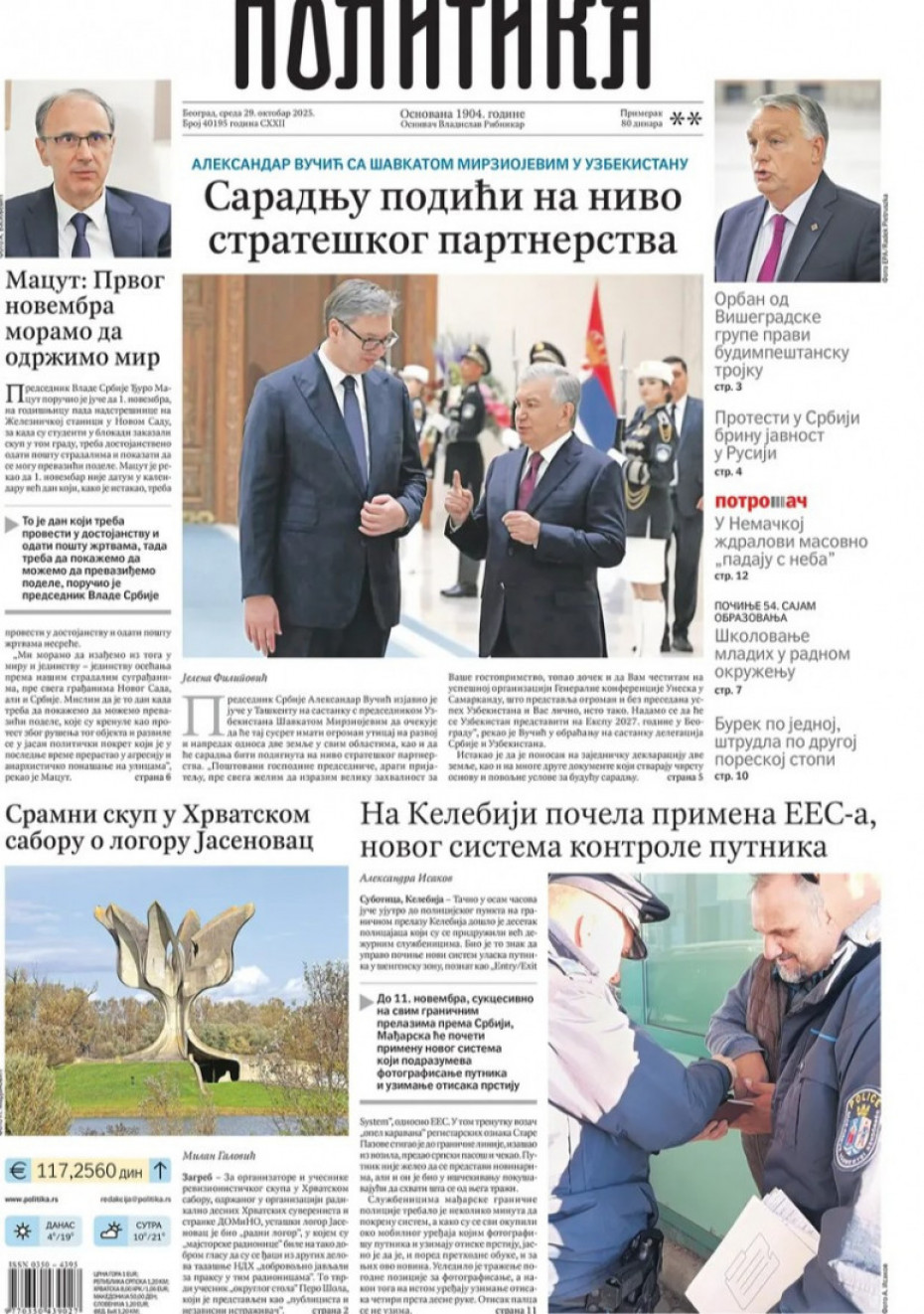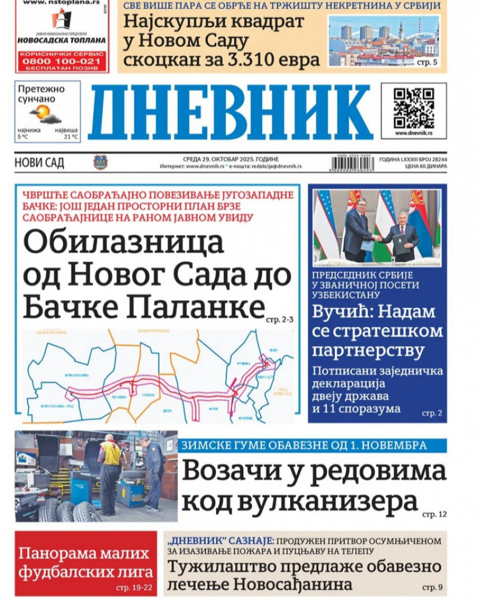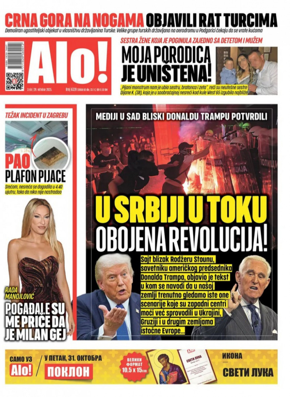 Pogledajte šta na naslovnim stranama donose dnevne novine u Srbiji u izdanju za sredu, 29. oktobar