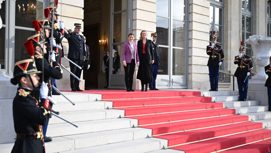 Bron-Pive je dočekala Brnabić u zgradi francuske Narodne skupštine. Brnabić će se danas sastati i sa predsednikom francuskog Senata Žerarom Laršeom.