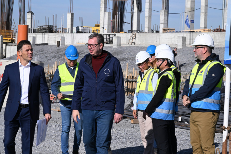 Predsednika je na početku gradilišta dočekao ministar finansija Siniša Mali, a zatim su krenuli u obilazak.