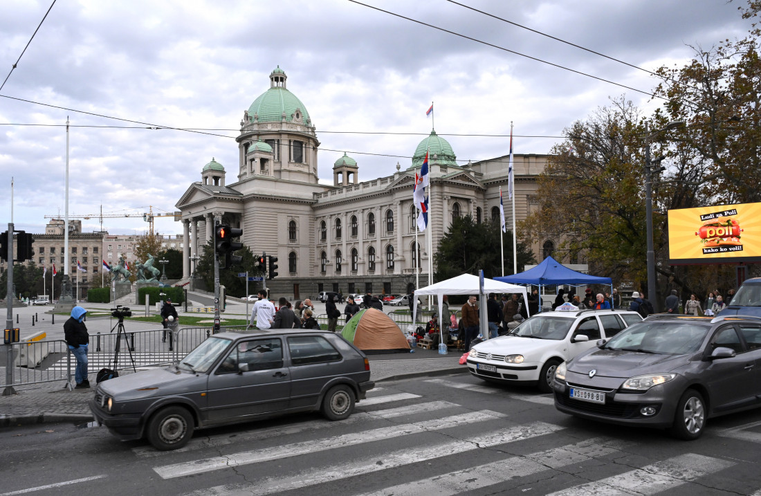 Reporter Euronews Srbija kaže da je ispred parlamenta podignuto još nekoliko šatora, da se postavljaju zvučnici, ali i da je najavljen i dolazak građana iz drugih delova Srbije koji dolaze da daju podršku Dijani Hrki.