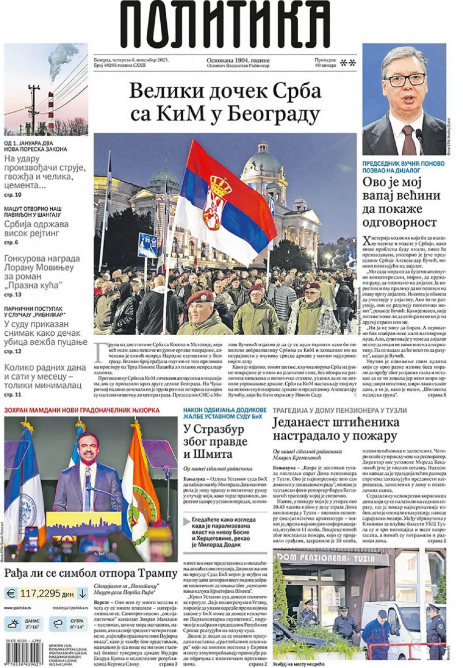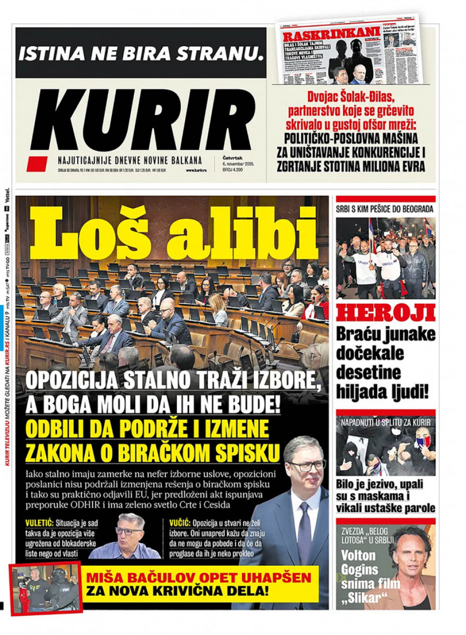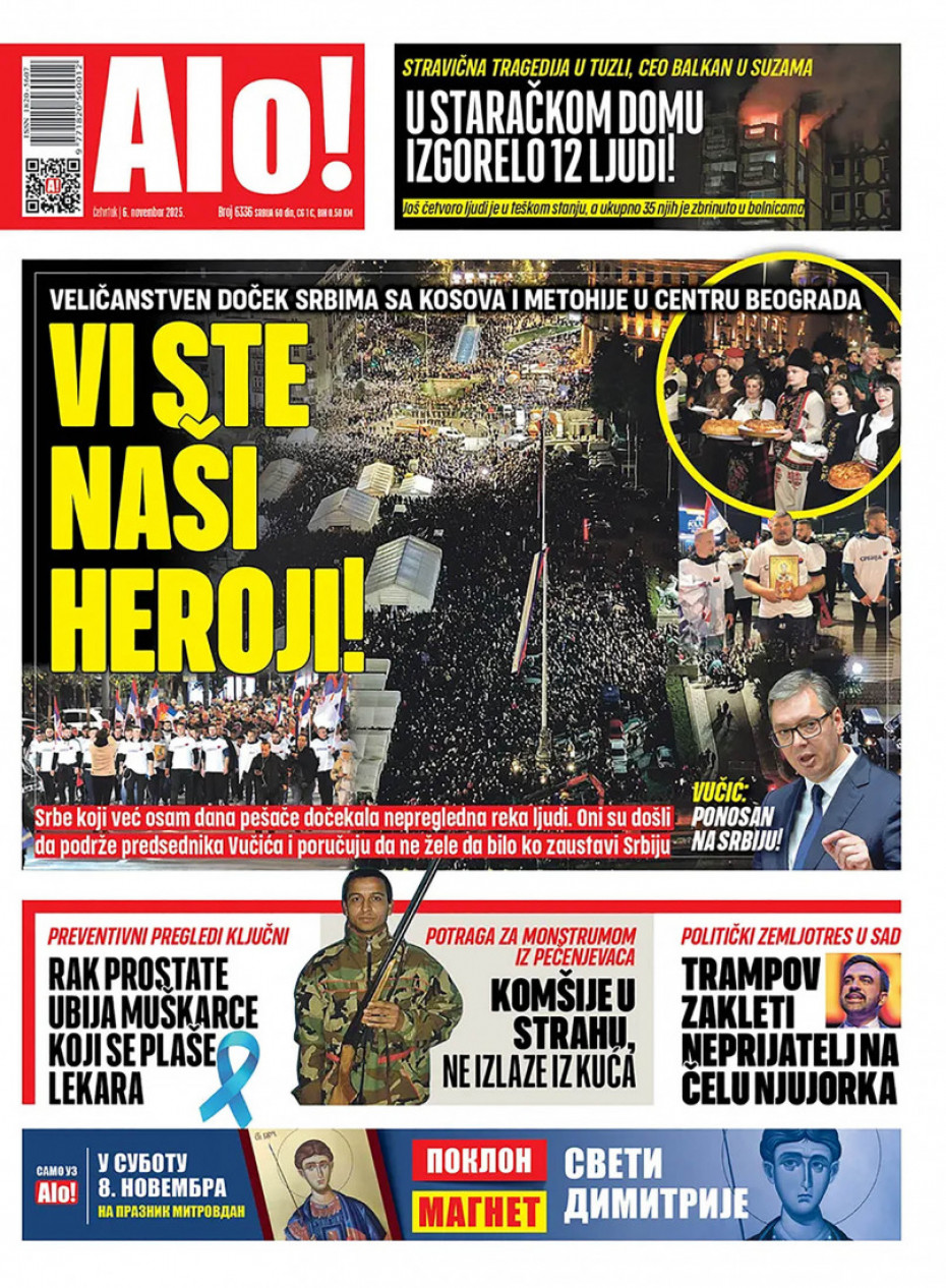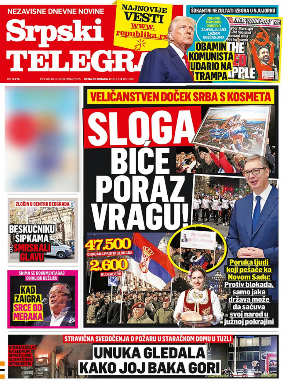 Pogledajte šta na naslovnim stranama donose dnevne novine u Srbiji u izdanju za četvrtak, 6. novembar