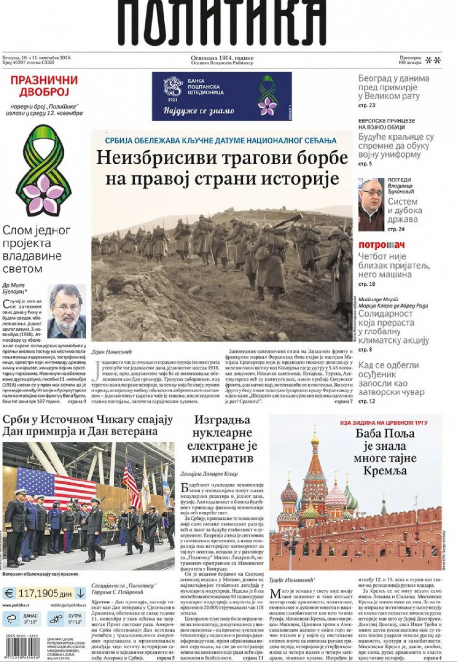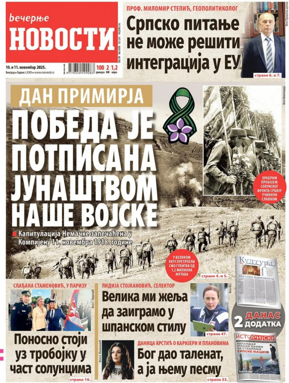 Naslovne strane dnevne štampe za utorak, 11. novembar