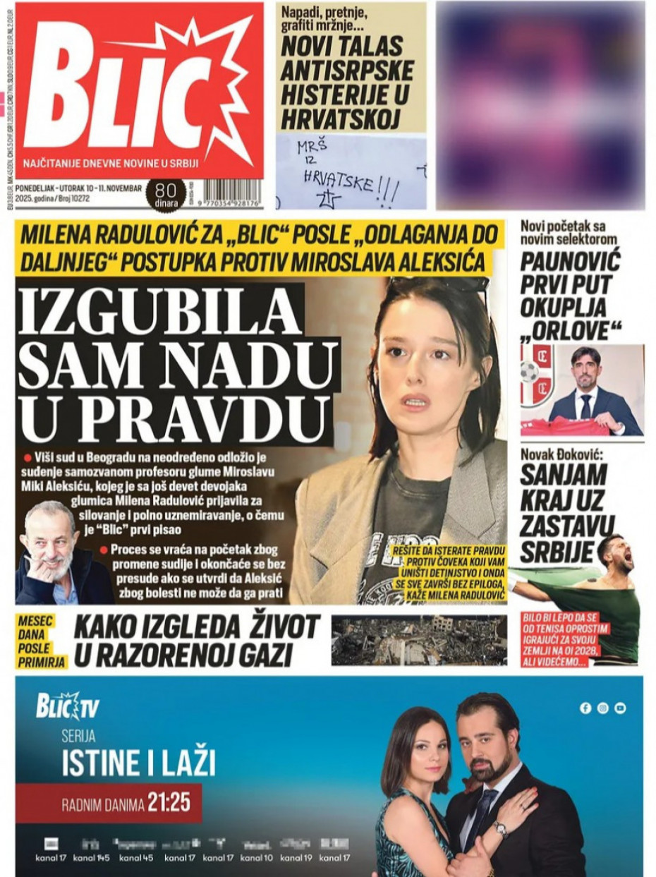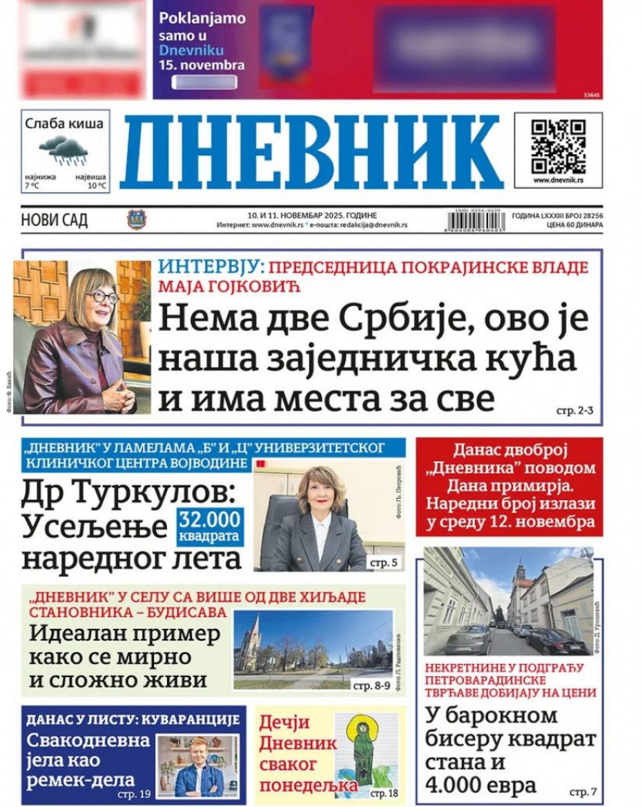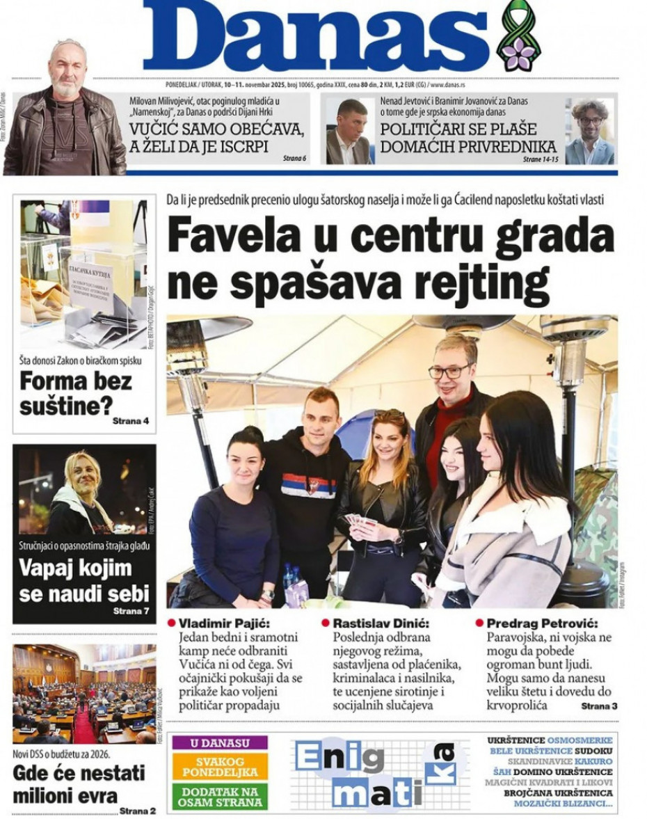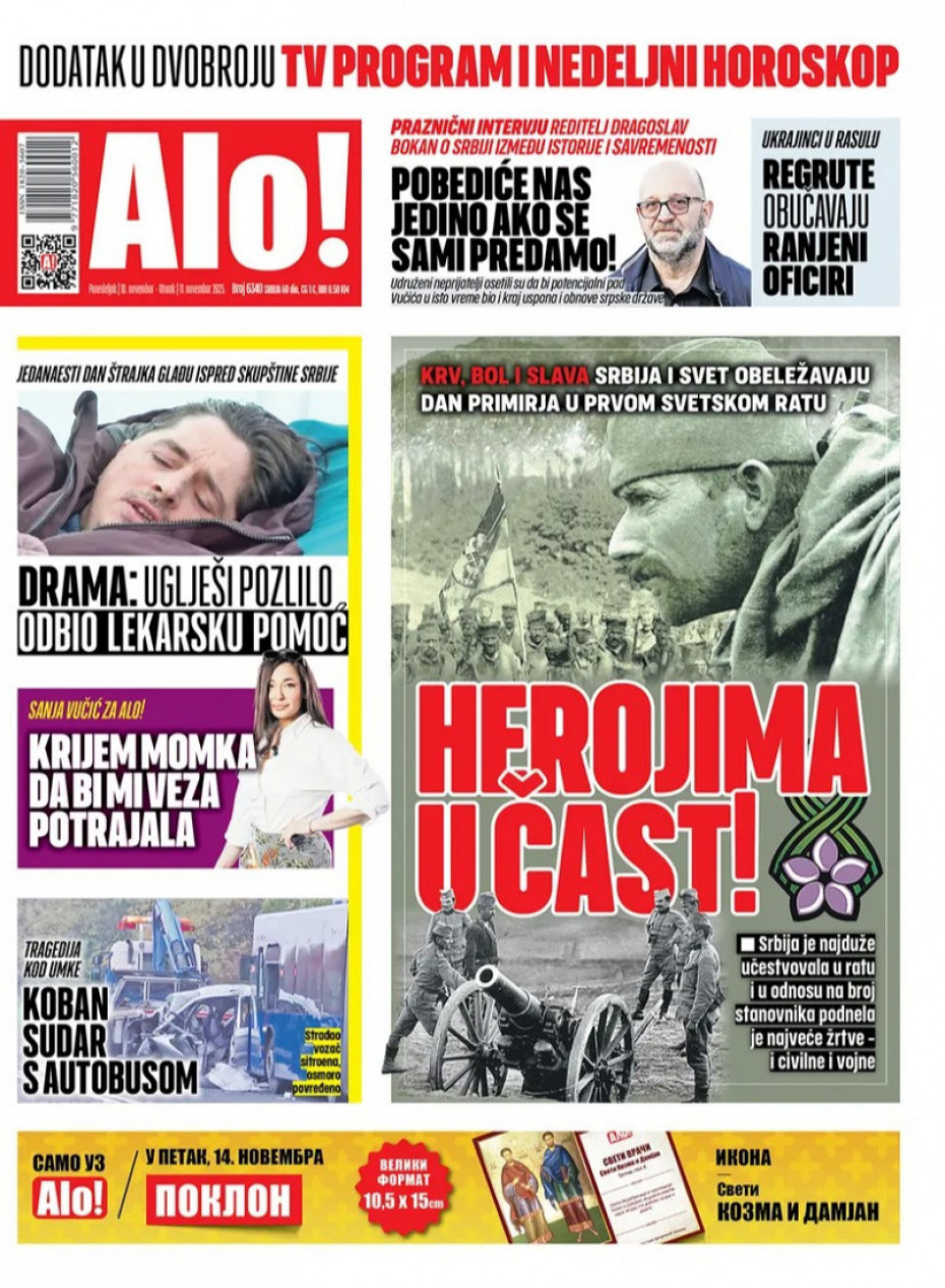 Pogledajte šta na naslovnim stranama donose dnevne novine u Srbiji u izdanju za utorak, 11. novembar.