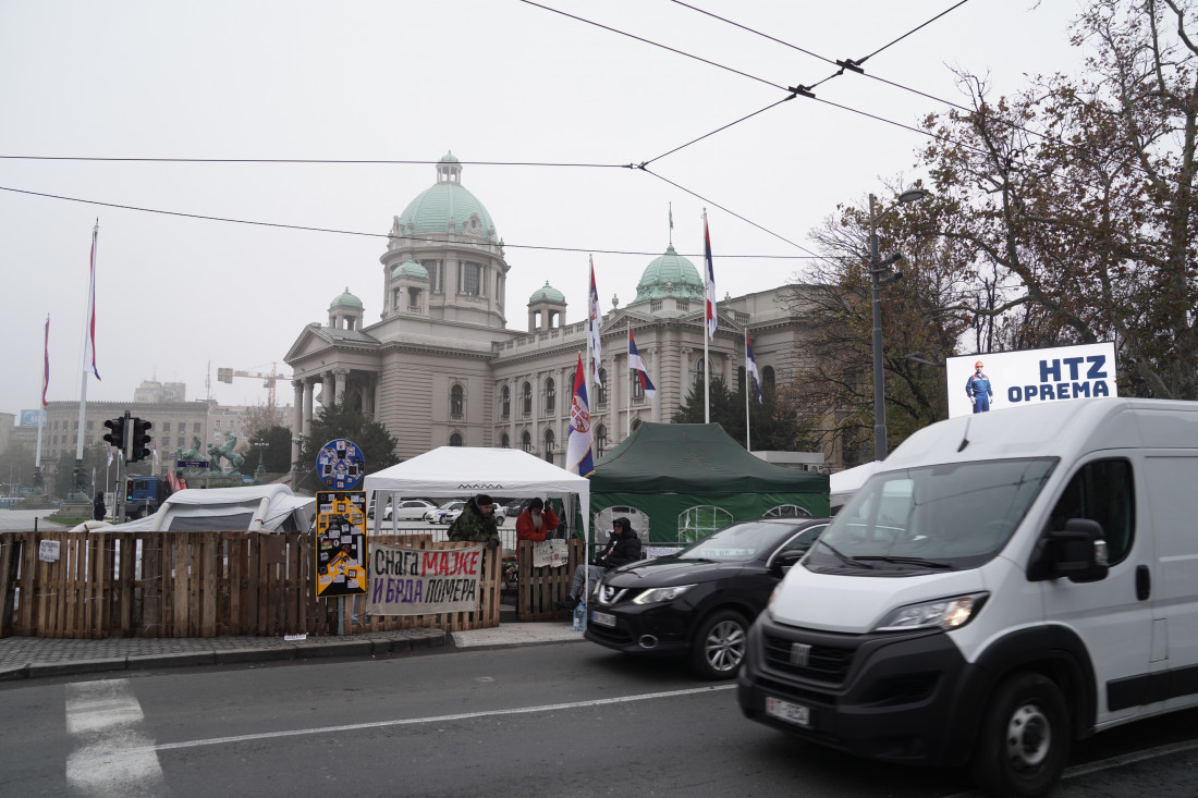 U blizini Doma Narodne skupštine, na raskrsnici Takovske i Bulevara kralja Aleksandra, nalazi se šator u kojem je Dijana Hrka, čiji je sin nastradao u padu nadstrešnice na Železničkoj stanici u Novom Sadu, a koja od 2. novembra štrajkuje glađu zahtevajući da se utvrdi odgovornost za smrt njenog sina i ostalih nastradalih u padu nadstrešnice.