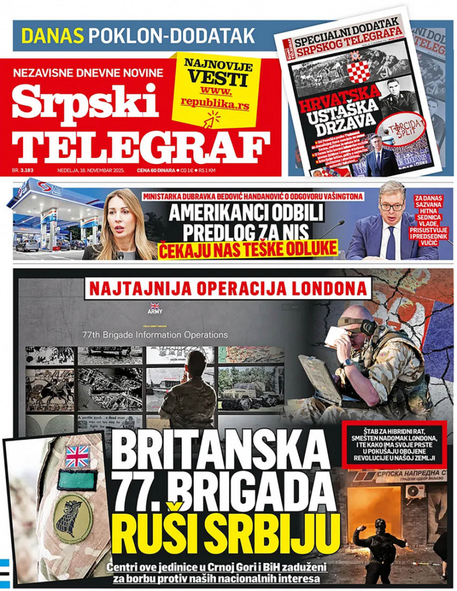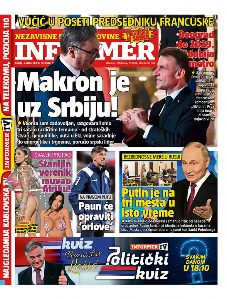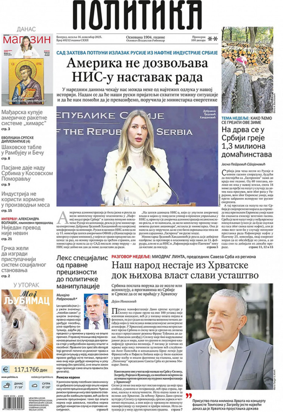 Politika Naslovne strane dnevne štampe za nedelju, 16. novembar Pogledajte šta na naslovnim stranama donose dnevne novine u Srbiji u izdanju za nedelju, 16. novembar 15/11/2025 20:34 https://www.euronews.rs/srbija/politika/196849/naslovne-strane-dnevne-stampe-za-nedelju-16-novembar/vest pročitaj celu vest