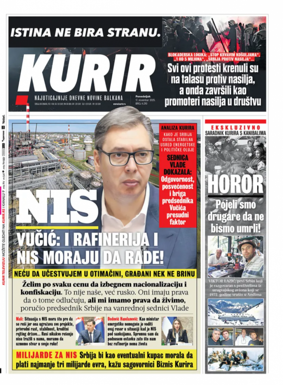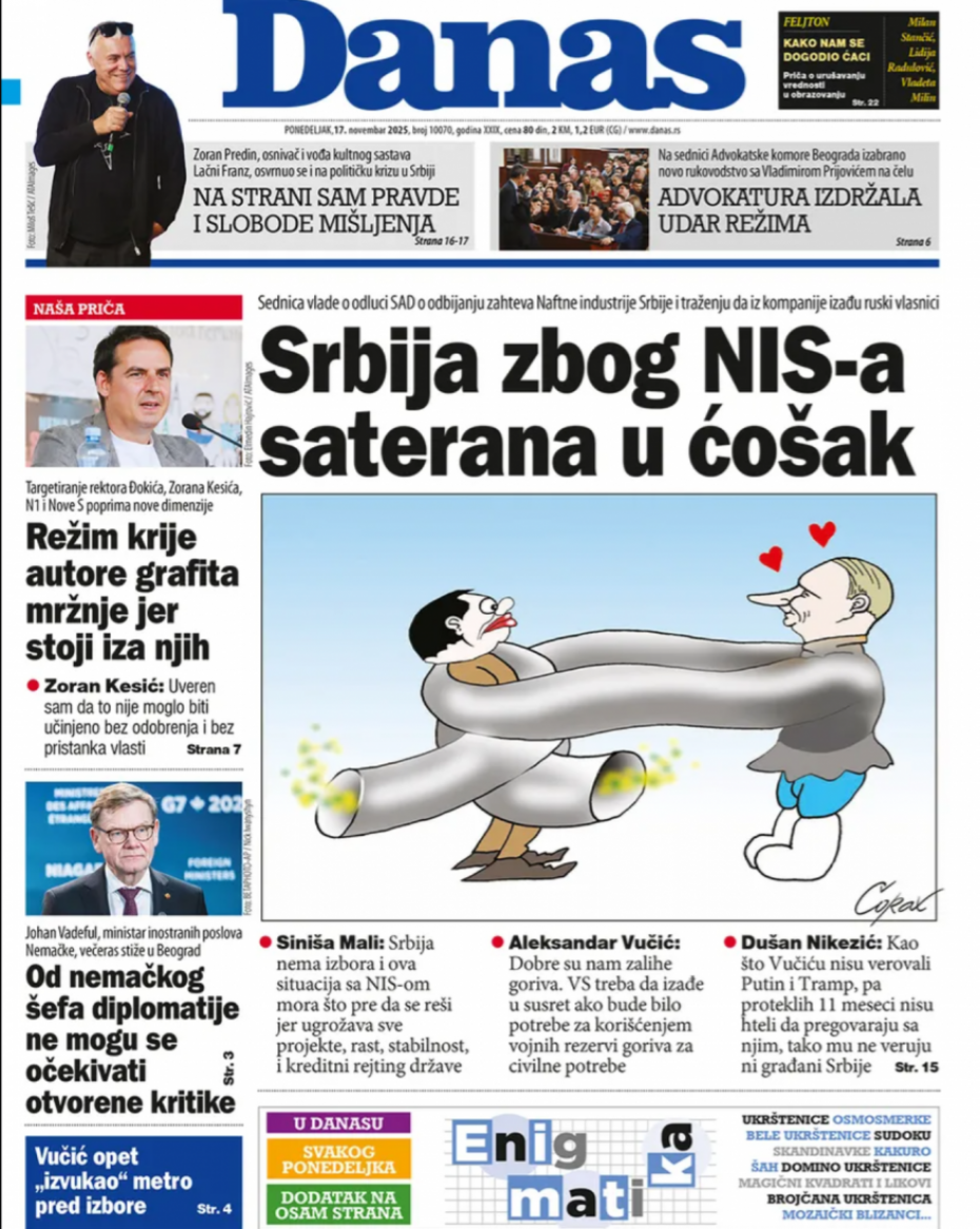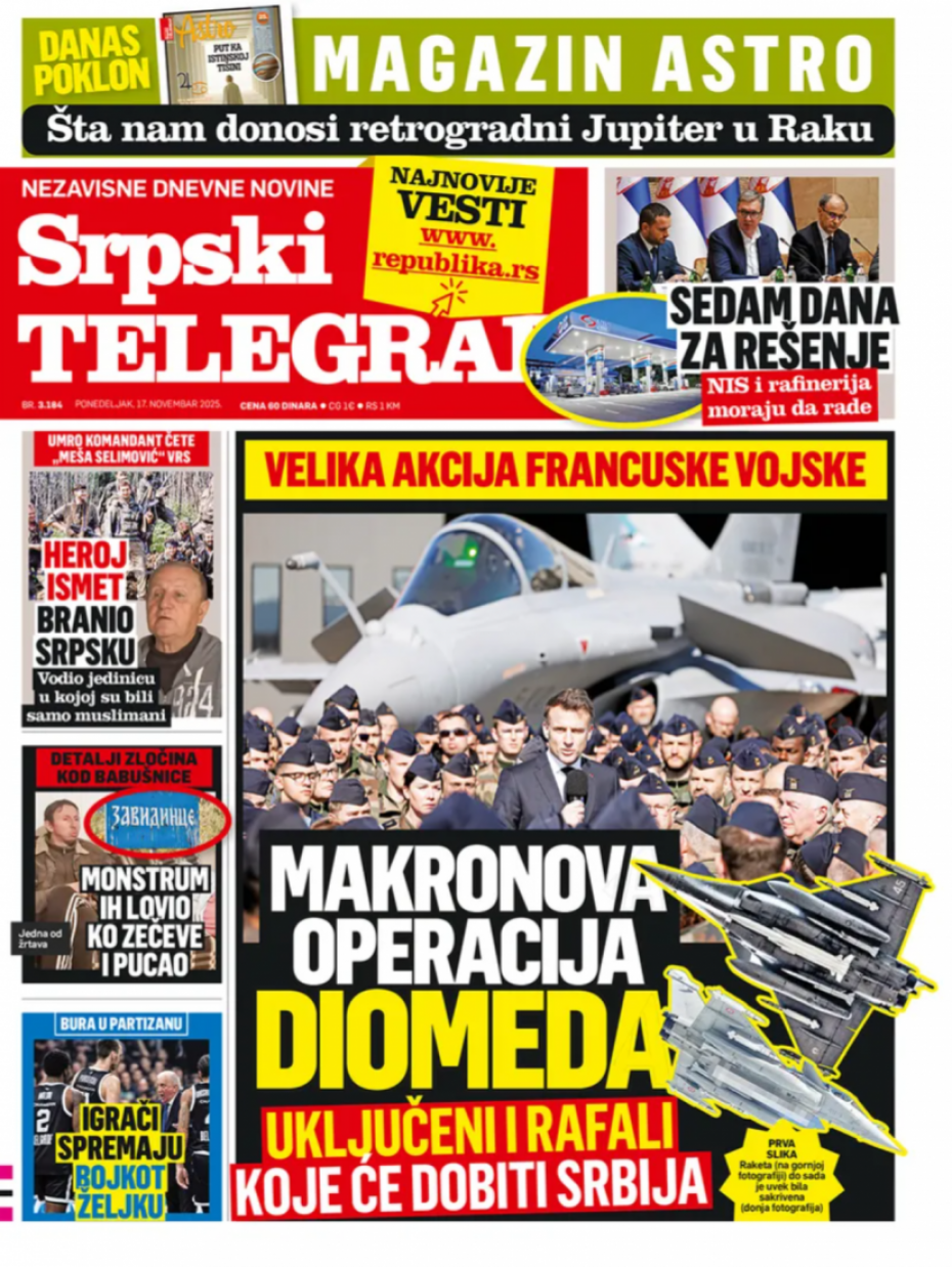 Pogledajte šta na naslovnim stranama donose dnevne novine u Srbiji u izdanju za ponedeljak, 17. novembar