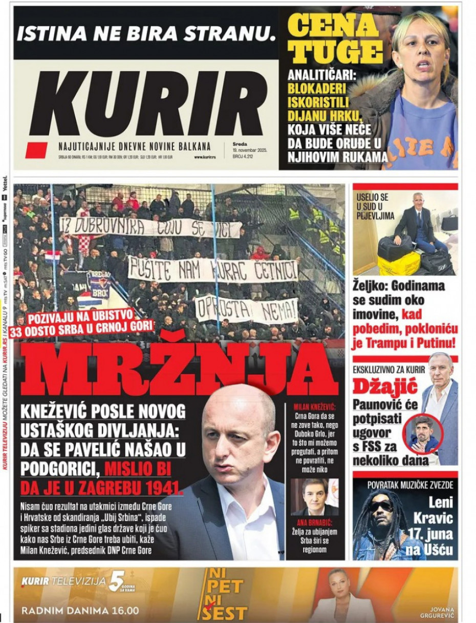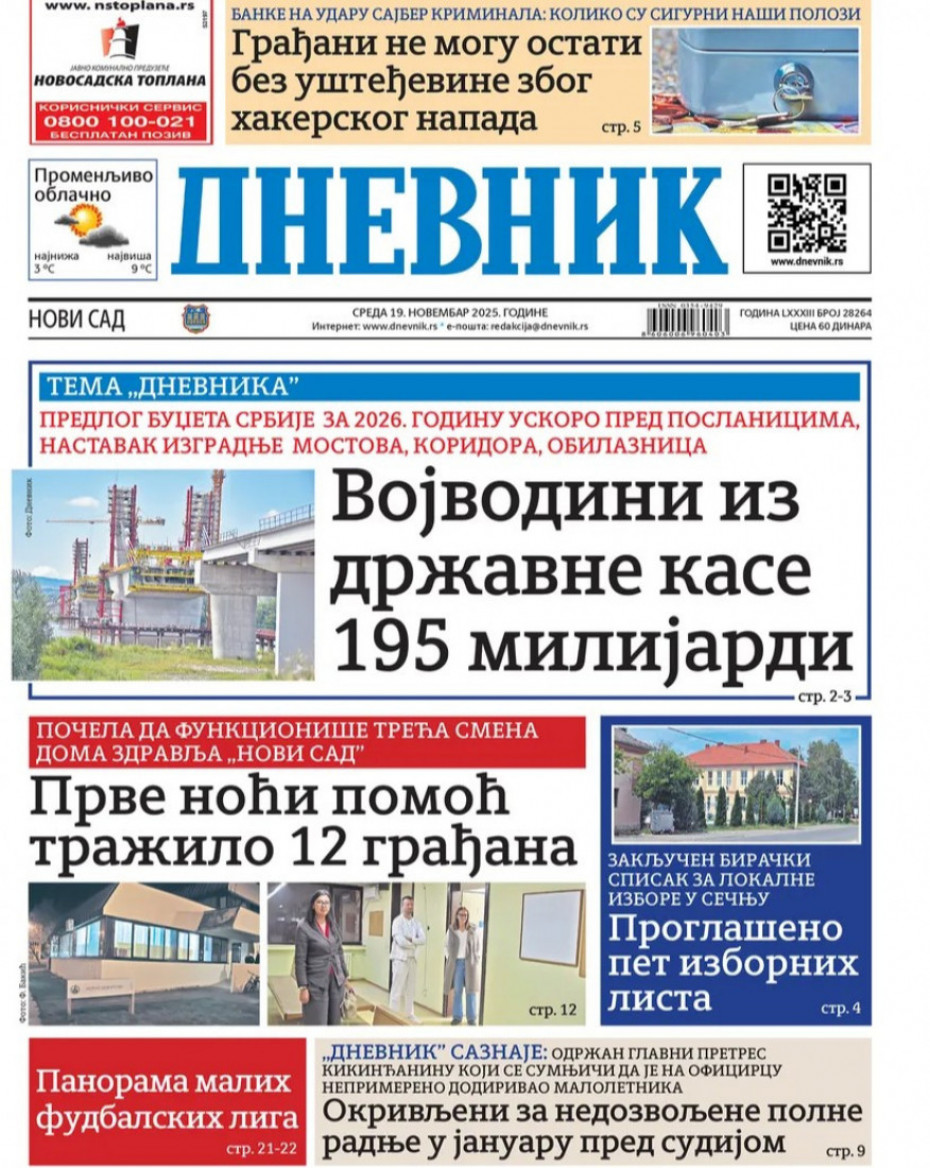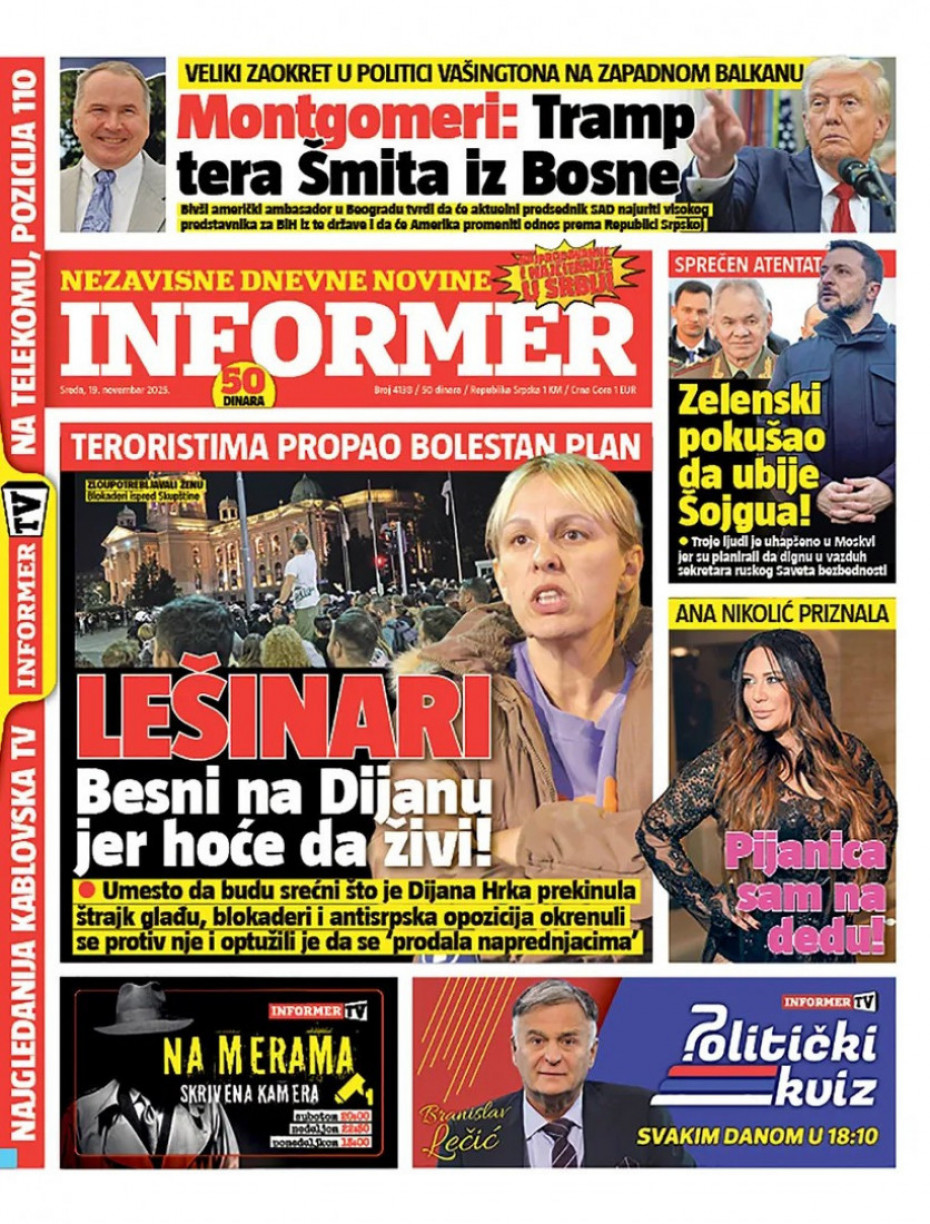 Pogledajte šta na naslovnim stranama donose dnevne novine u Srbiji u izdanju za sredu, 19. novembar