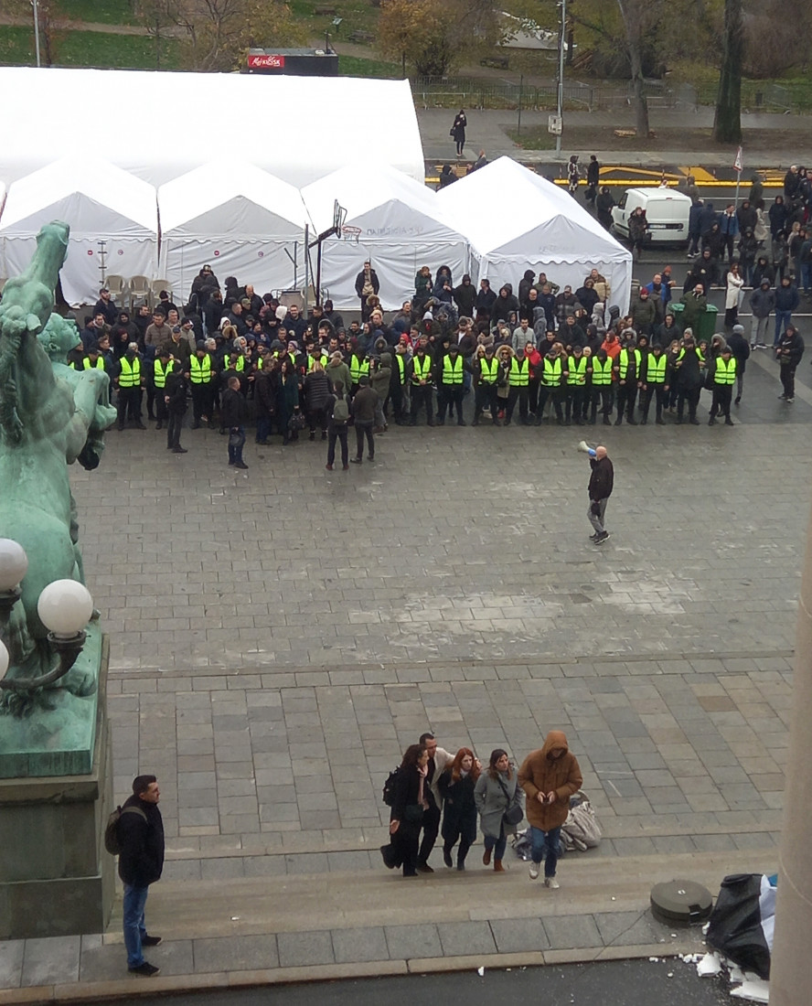 Zamenik predsednika poslaničke grupe Srbija centar (Srce) Stefan Janjić rekao je da je poneo makaze i da je presekao ogradu ispred parlamenta.