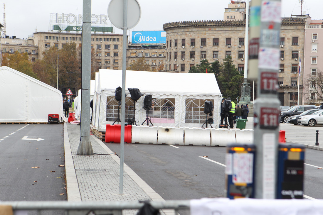 Pre vremena predviđenog za početak sednice Narodne skupštine, grupa poslanika insistirala je da u skupštinu uđe na glavni ulaz zgrade i alatom za sečenje žice isekli su ogradu ranije postavljene između Pionirskog parka i skupštinskog platoa.