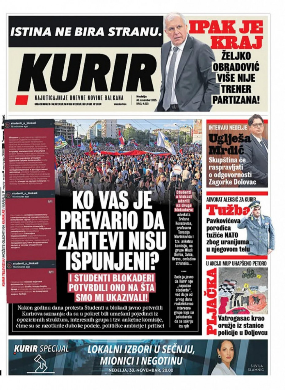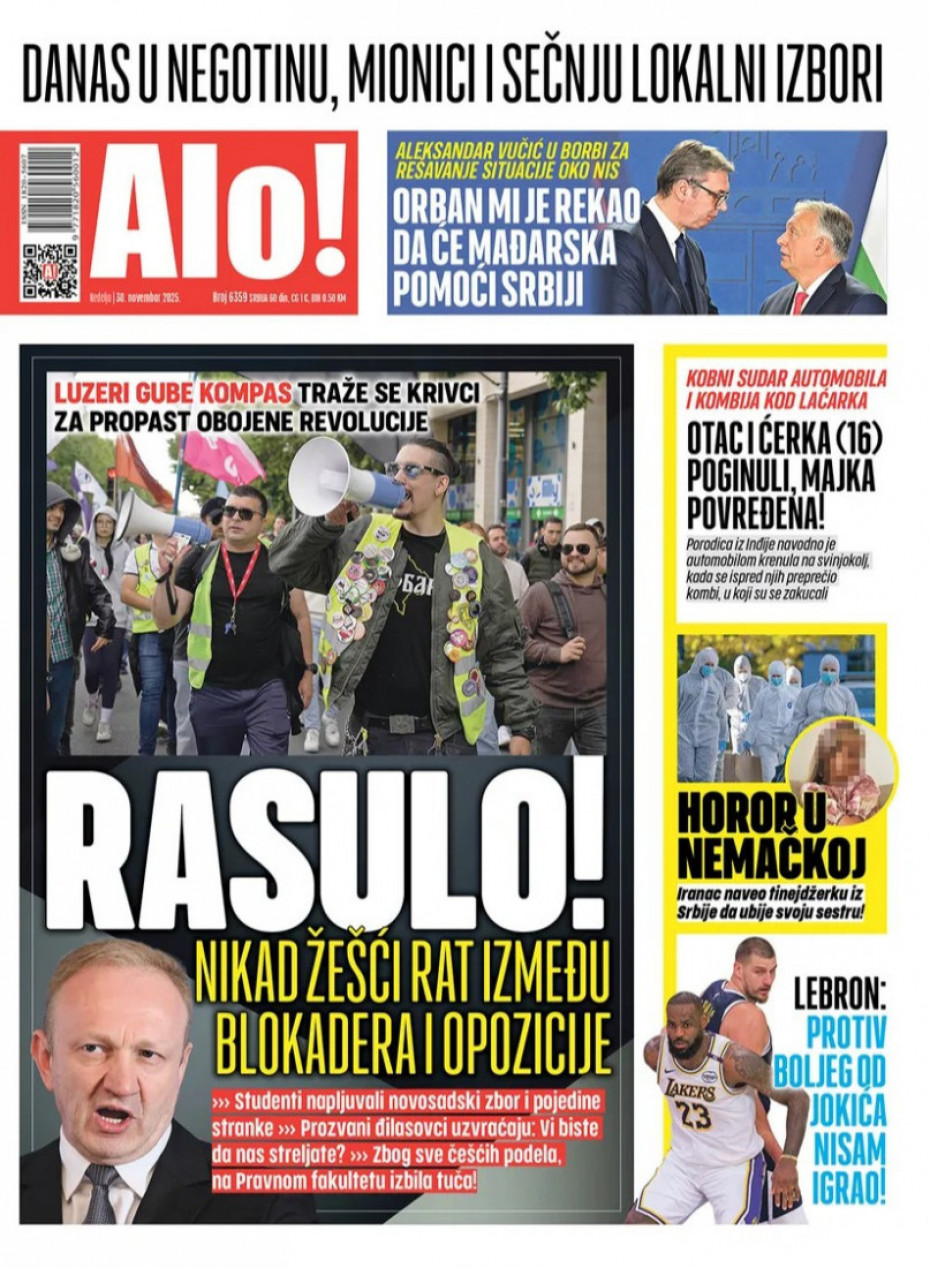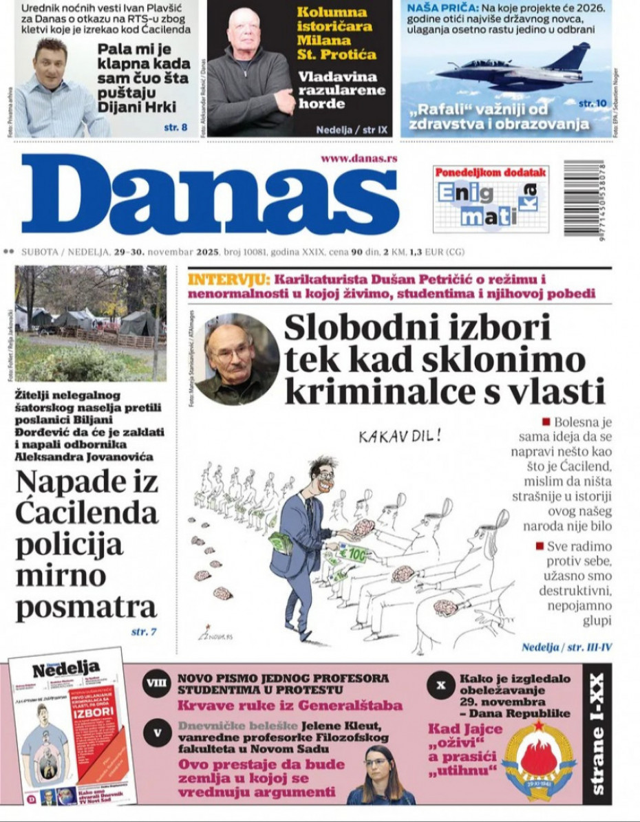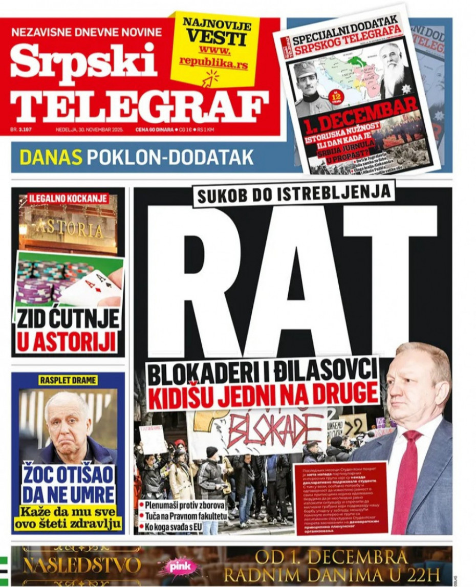 Naslovna Srbija Politika Politika Naslovne strane dnevne štampe za nedelju, 30. novembar Komentari Profimedia, Logo - Copyright Profimedia, Logo Autor: Euronews Srbija 29/11/2025 - 20:30 Podeli veličina teksta Aa Aa Pogledajte šta na naslovnim stranama donose dnevne novine u Srbiji u izdanju za nedelju, 30. novembar. Promo Pogledaj galeriju Promo Pogledaj galeriju Promo Pogledaj galeriju Promo Pogledaj galeriju Promo Pogledaj galeriju Promo Pogledaj galeriju Promo Pogledaj galeriju Promo Pogledaj galeriju Promo Pogledaj galeriju Više o... Naslovne strane Naslovnice Dnevne novine Dnevna štampa Top tagovi Euronews Montenegro Kosovo i Metohija Rat u Ukrajini Kriza na Bliskom istoku