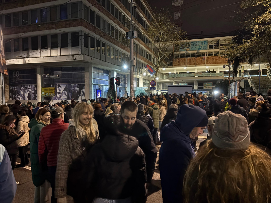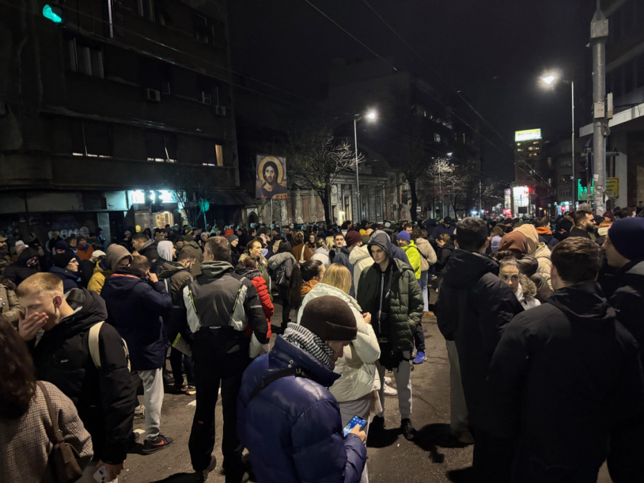 Grupa okupljenih na poziv studenata u blokadi i tzv. zborova blokirala Takovsku ulicu kod RTS-a