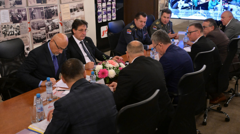 Sastanku su prisustvovali pomoćnik ministra za materijalne resurse dr Nenad Miloradović, šef Kabineta ministra odbrane pukovnik Nikola Matović i predsednik sindikata "Jumko spas" Srđan Petrović, navedeno je u saopštenju.