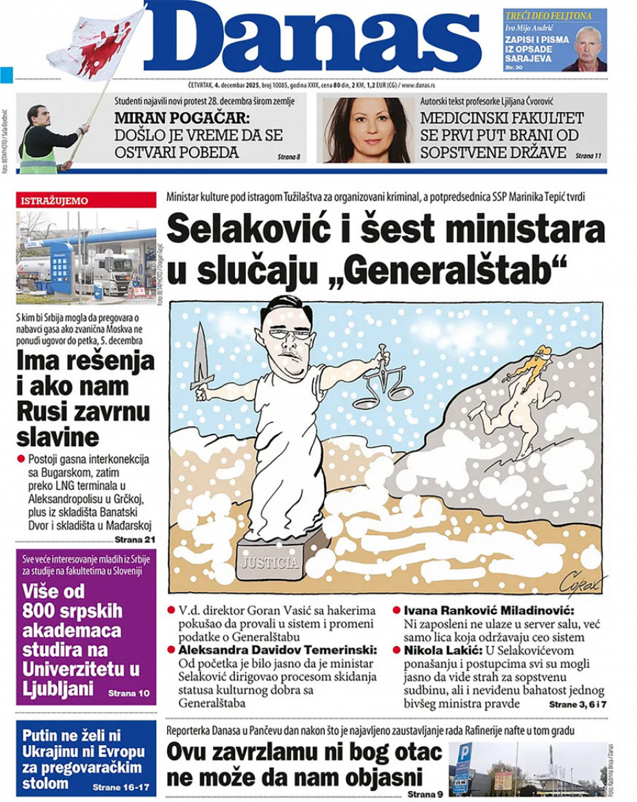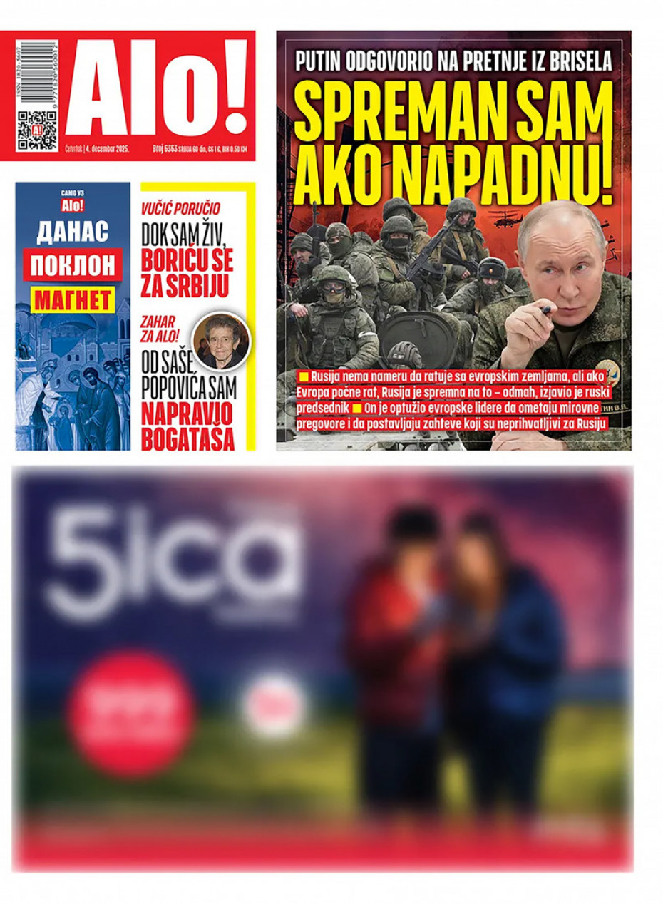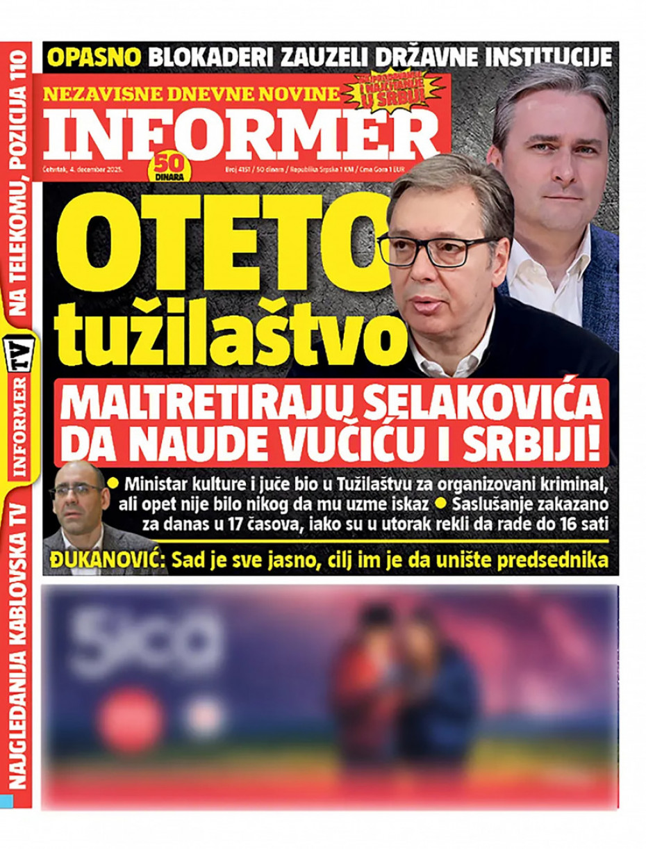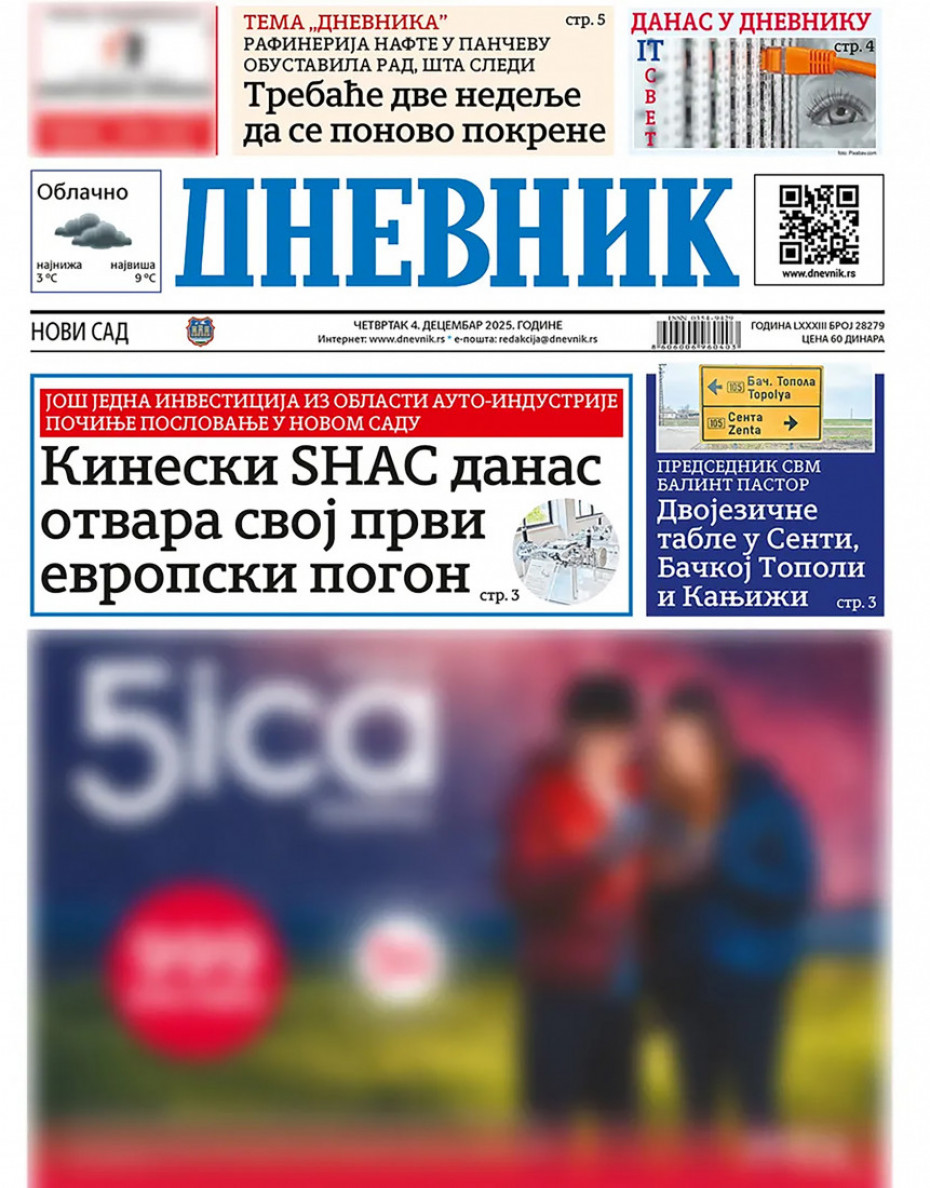 Pogledajte šta na naslovnim stranama donose dnevne novine u Srbiji u izdanju za četvrtak, 4. decembar