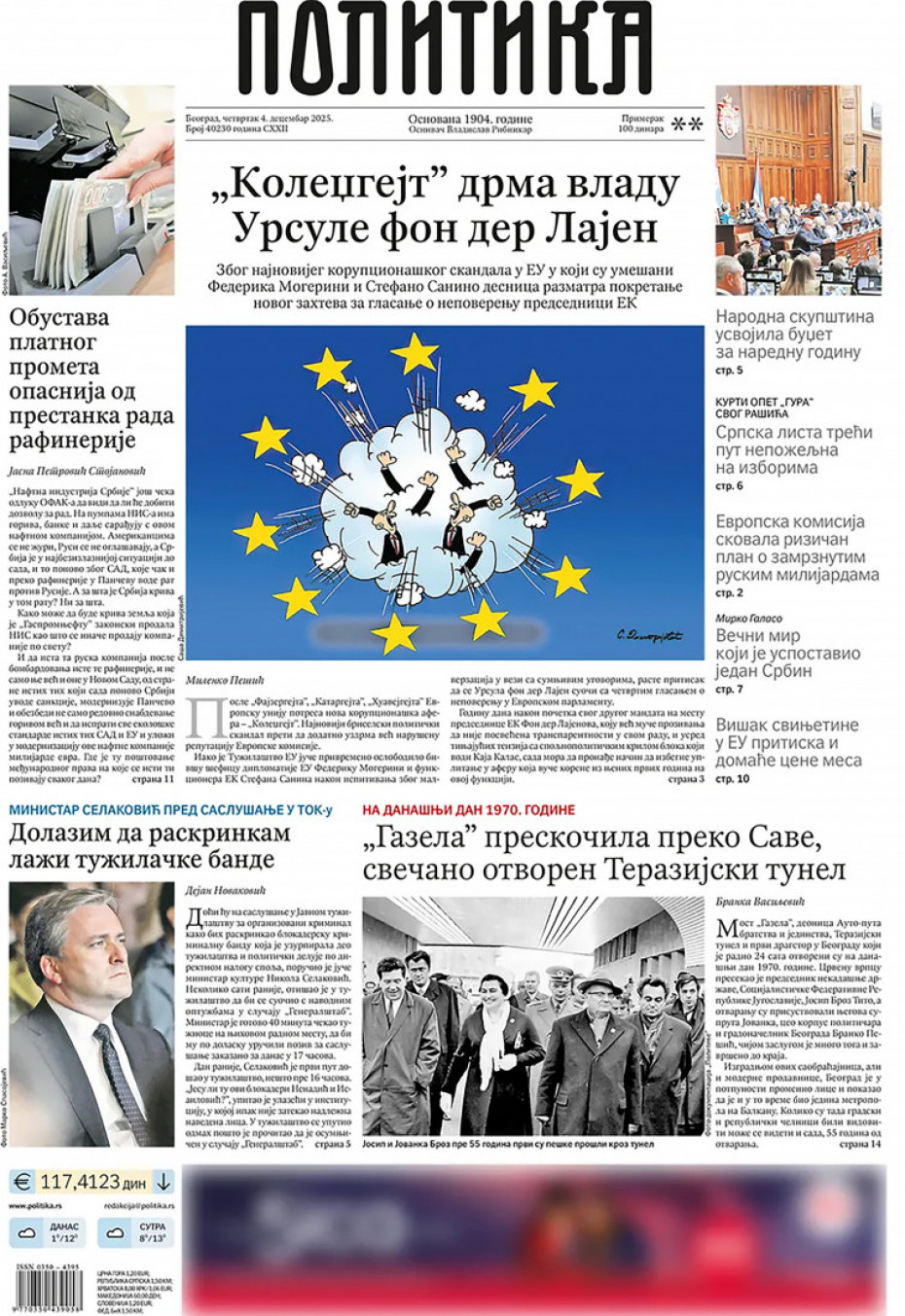 Naslovne strane dnevne štampe za četvrtak, 4. decembar