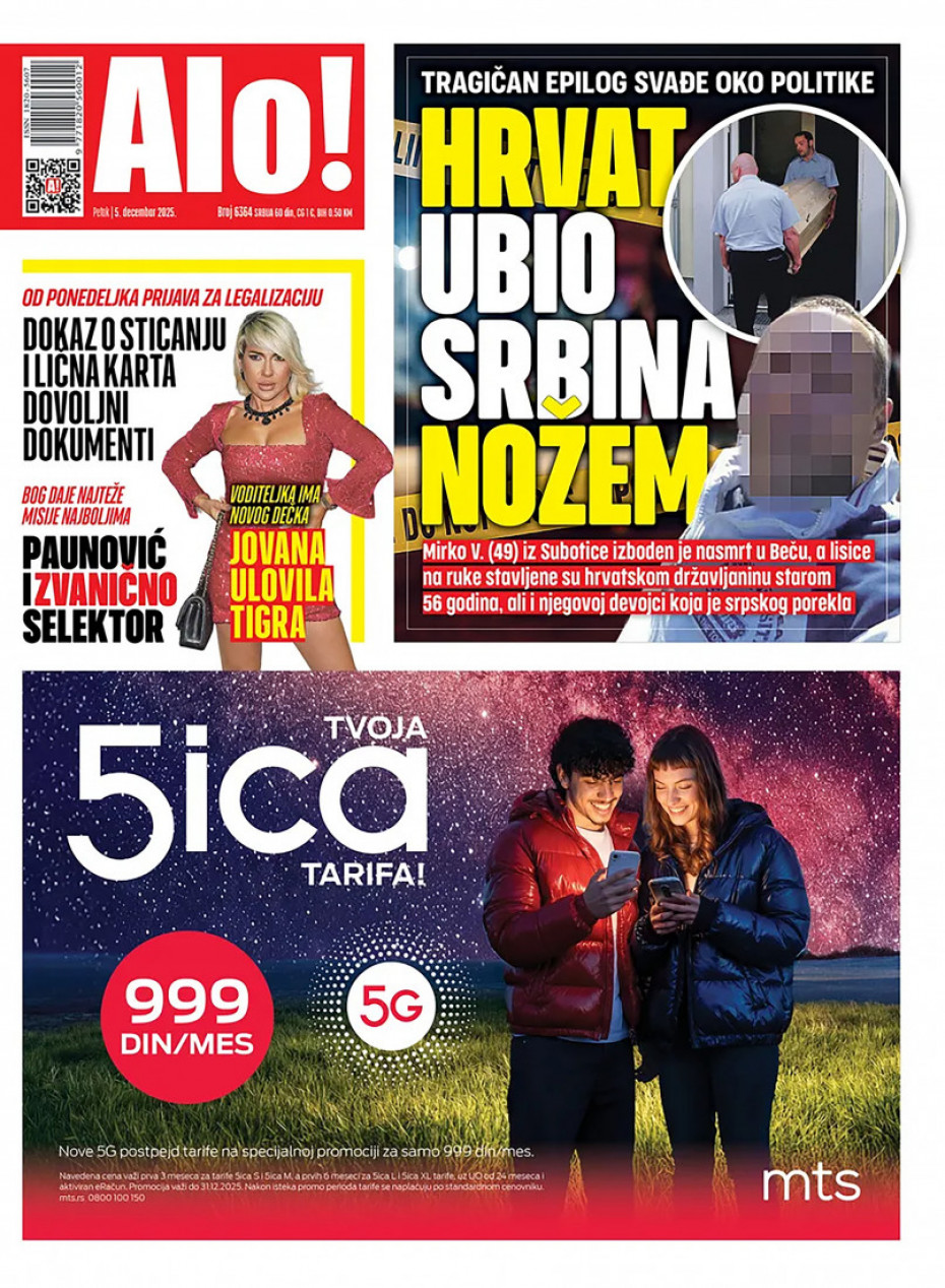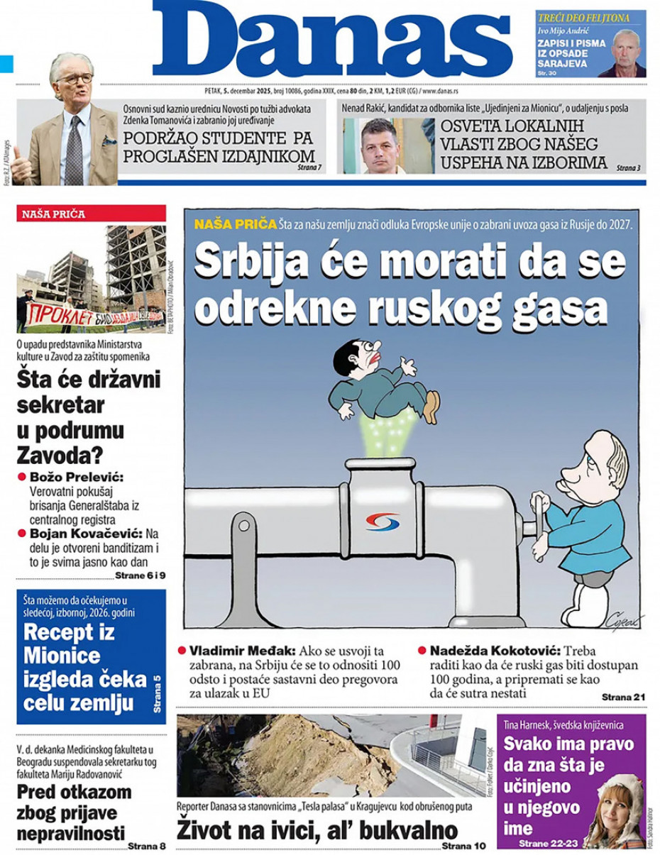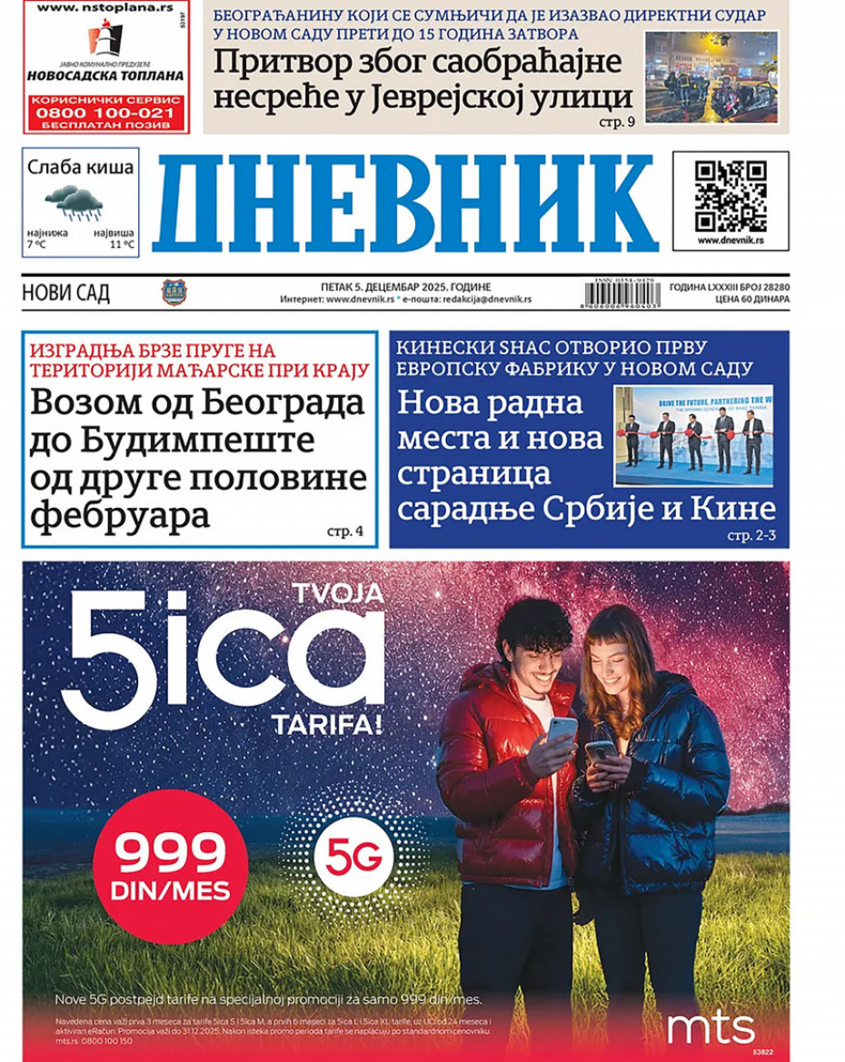 Pogledajte šta na naslovnim stranama donose dnevne novine u Srbiji u izdanju za petak, 5. decembar