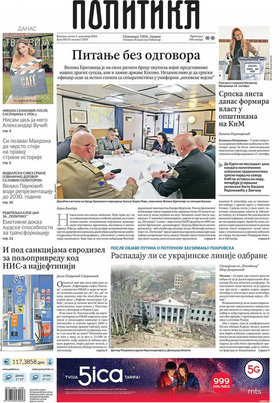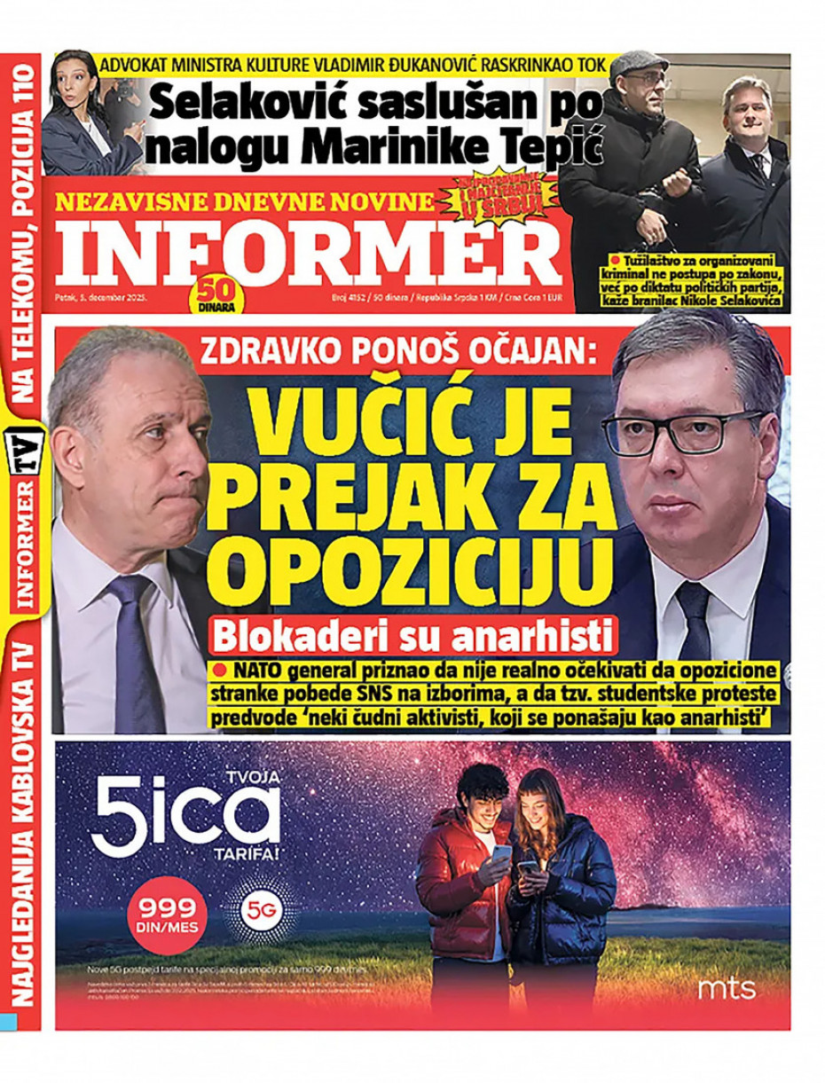 Naslovne strane dnevne štampe za petak, 5. decembar