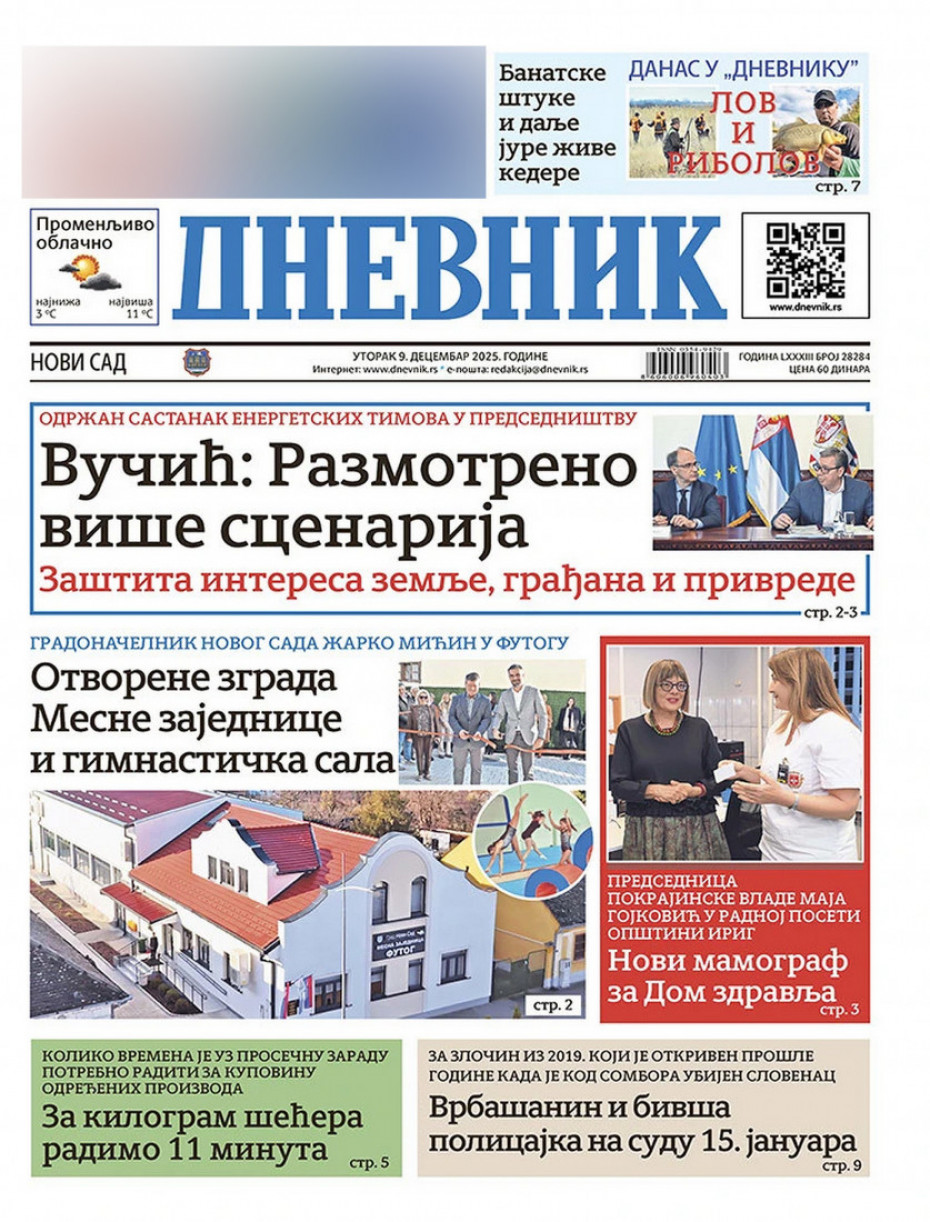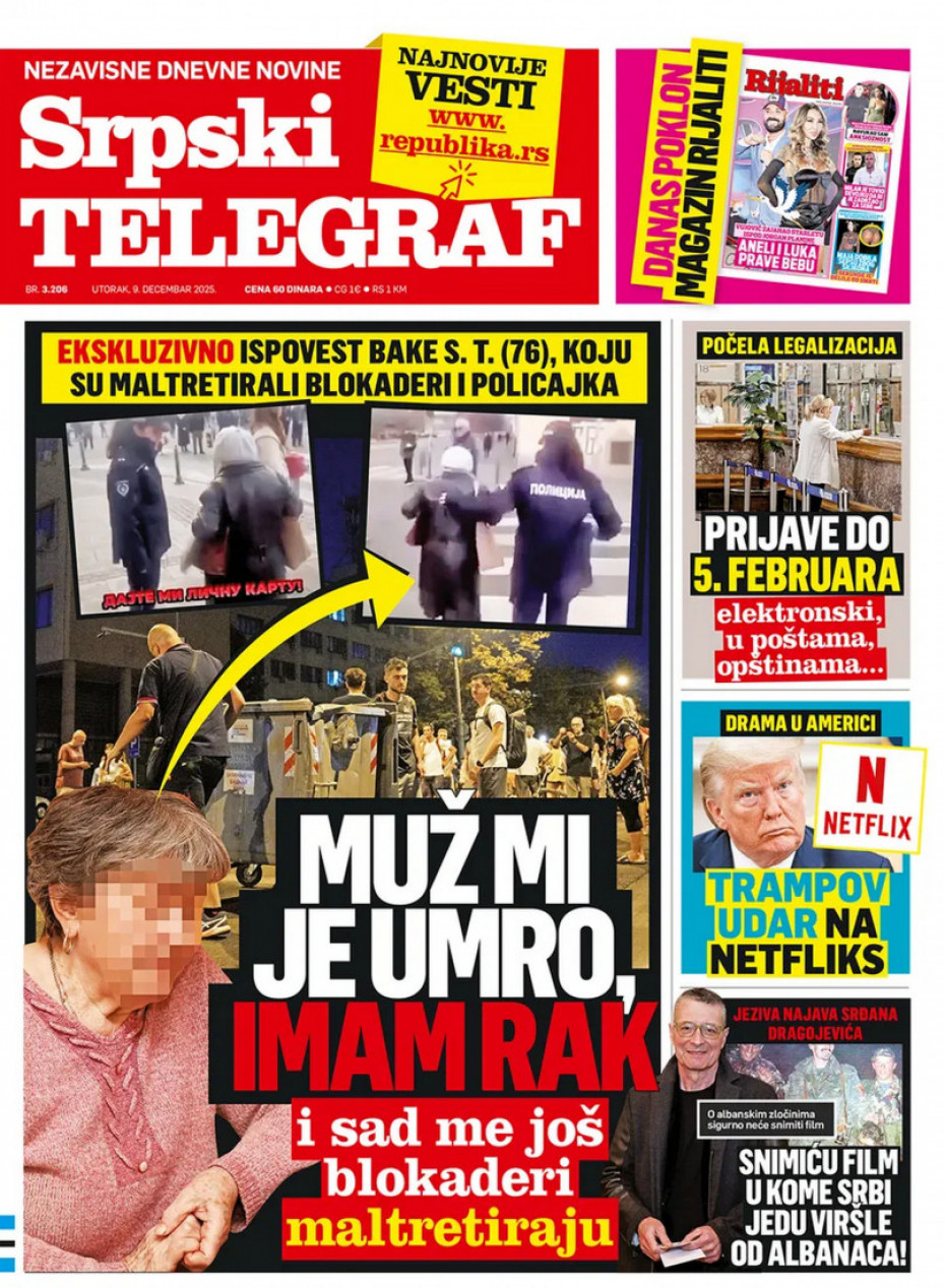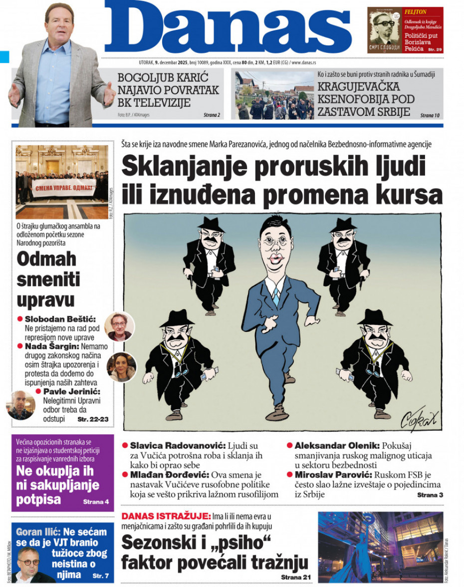 Pogledajte šta na naslovnim stranama donose dnevne novine u Srbiji u izdanju za utorak, 9. decembar
