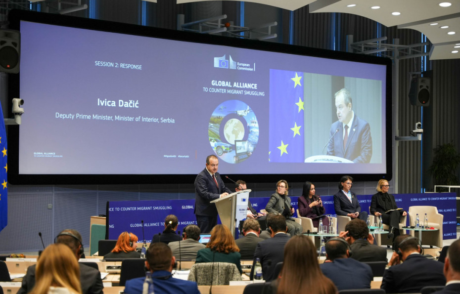 "Na ovoj konferenciji, drugoj po redu koju je organizovala Evropska komisija, učestvovalo je više od 20 ministara iz više od 50 zemalja. Ja sam izrazio zadovoljstvo načinom na koji Srbija postupa u slučajevima migracija. Mi nemamo problem sa migrantima, zato što smo i na vreme taj problem predupredili, ali učestvujemo u Globalnoj alijansi, pre svega zbog alata koji se koriste, jer svako krijumčarenje migranata podrazumeva angažovanje određenih kriminalnih mreža", rekao je Dačić u izjavi nakon učešća na konferenciji.