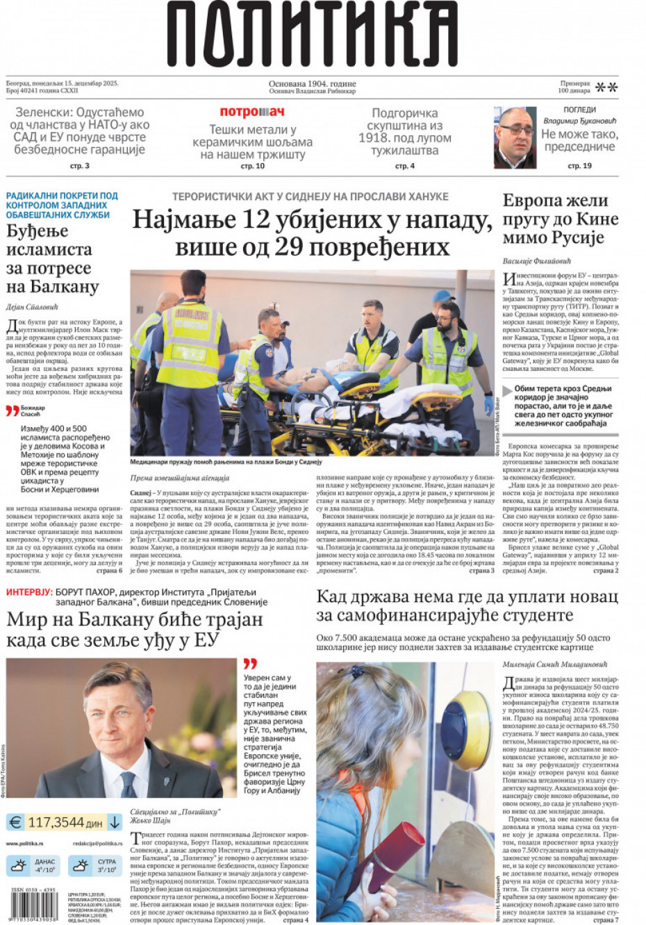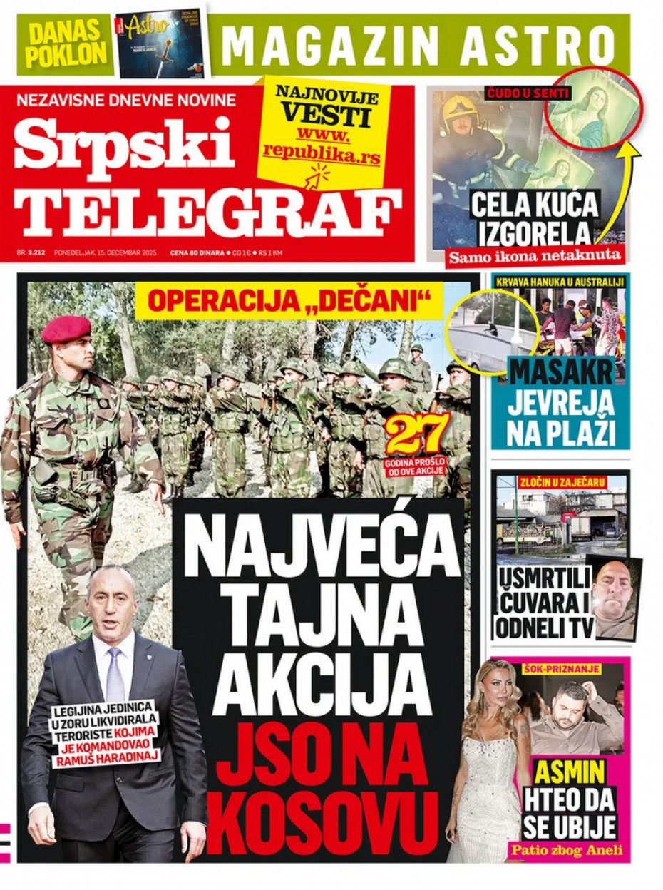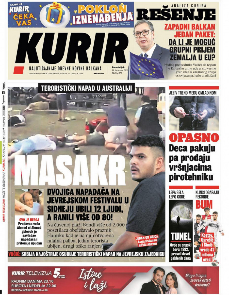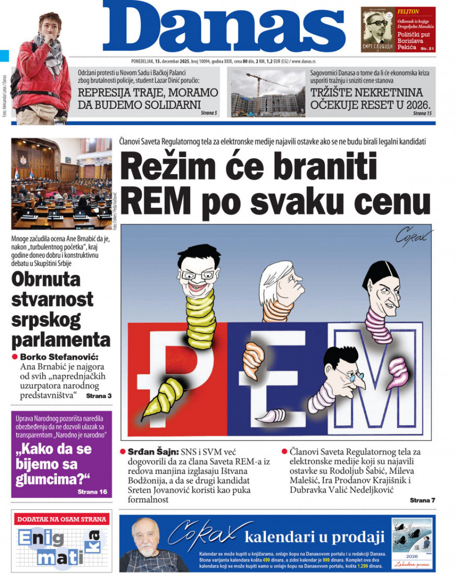 Naslovne strane dnevne štampe za ponedeljak, 15. decembar