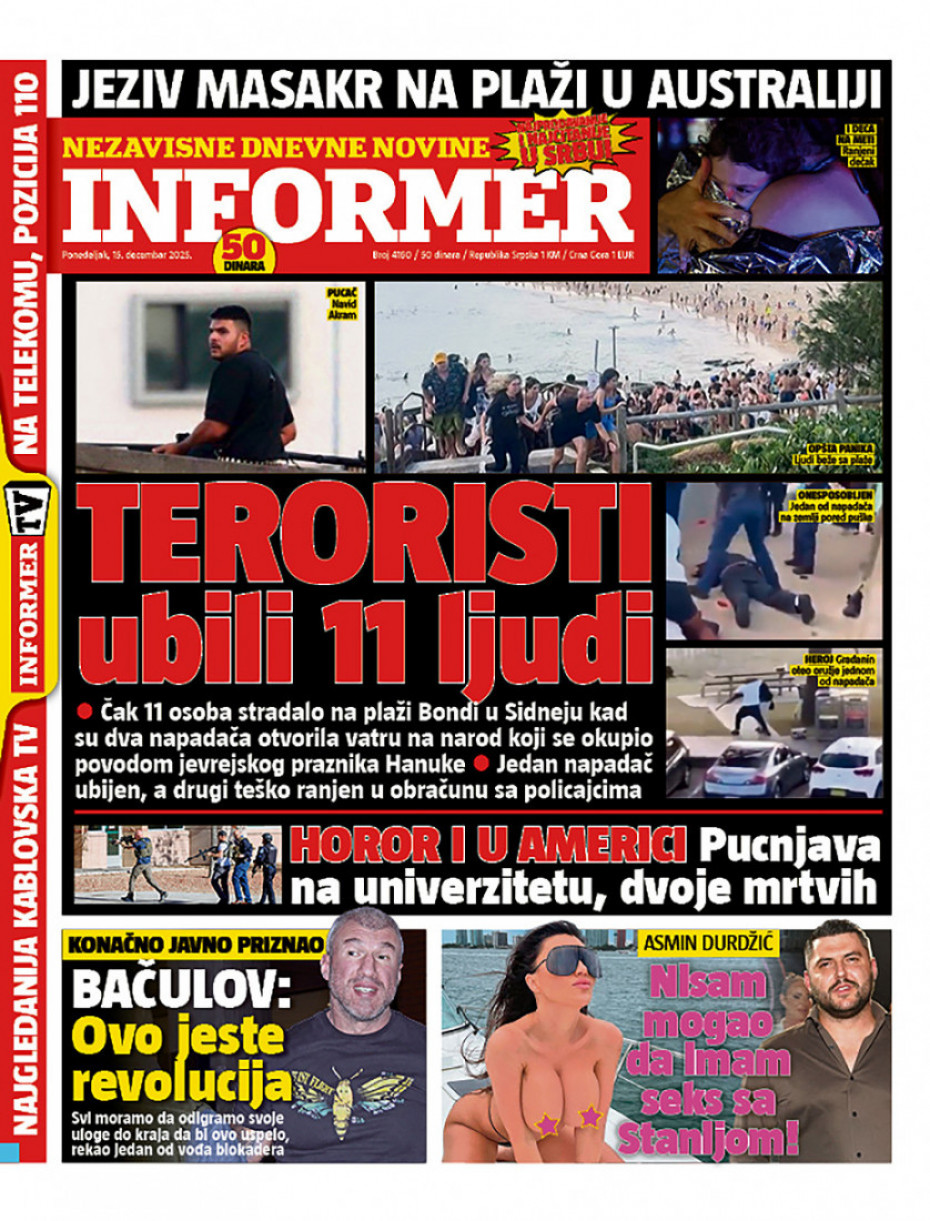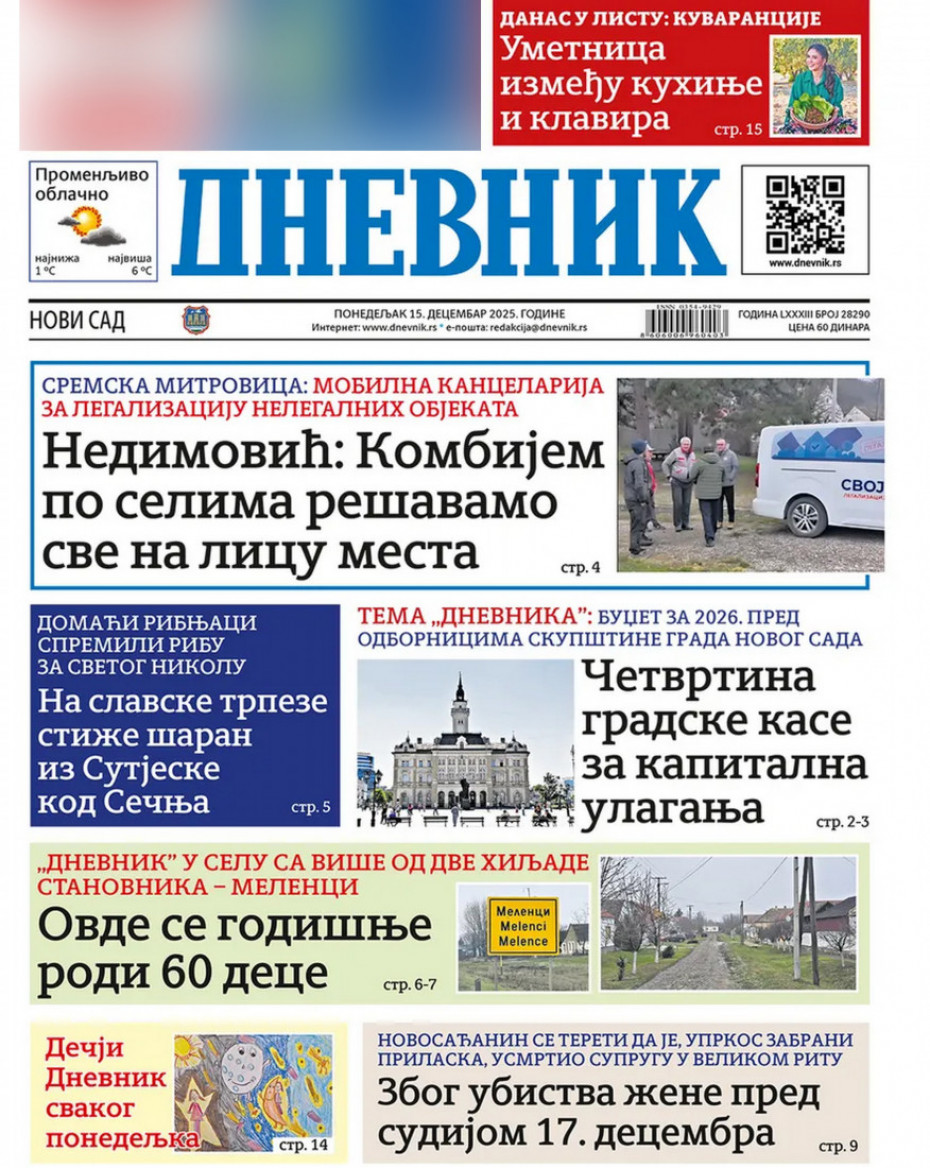 Pogledajte šta na naslovnim stranama donose dnevne novine u Srbiji u izdanju za ponedeljak, 15. decembar