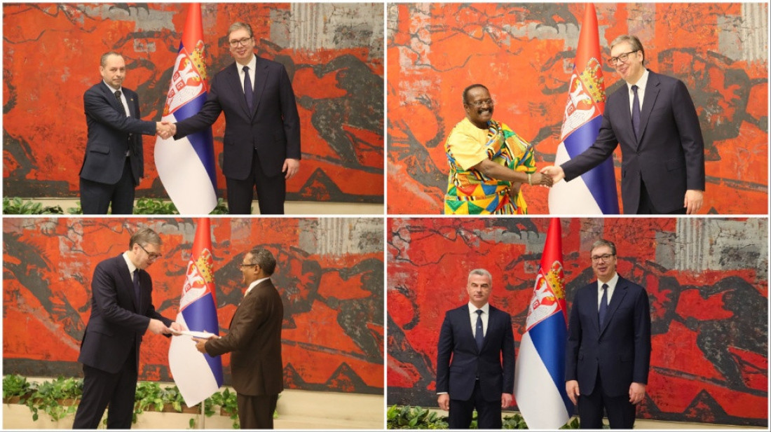 Predsednik Srbije Aleksandar Vučić primio je danas akreditivna pisma ambasadora Libana, Bugarske, Gane i Kube.