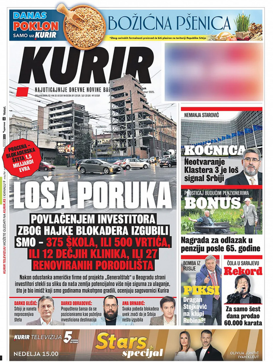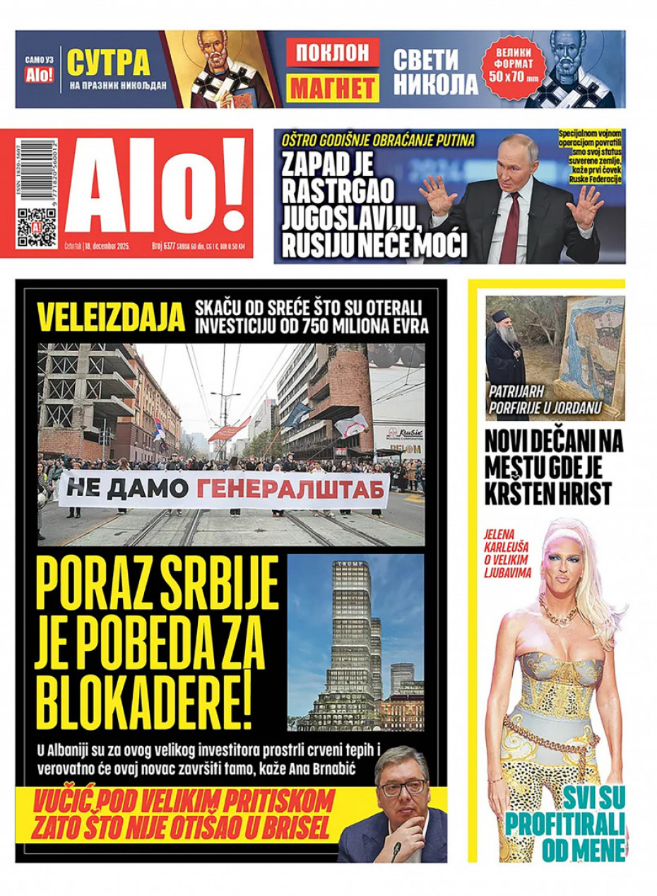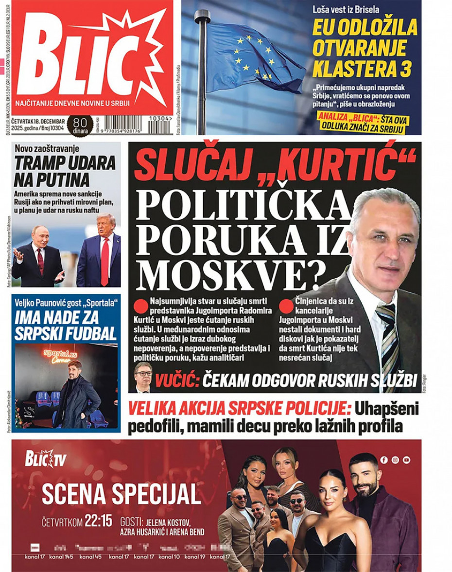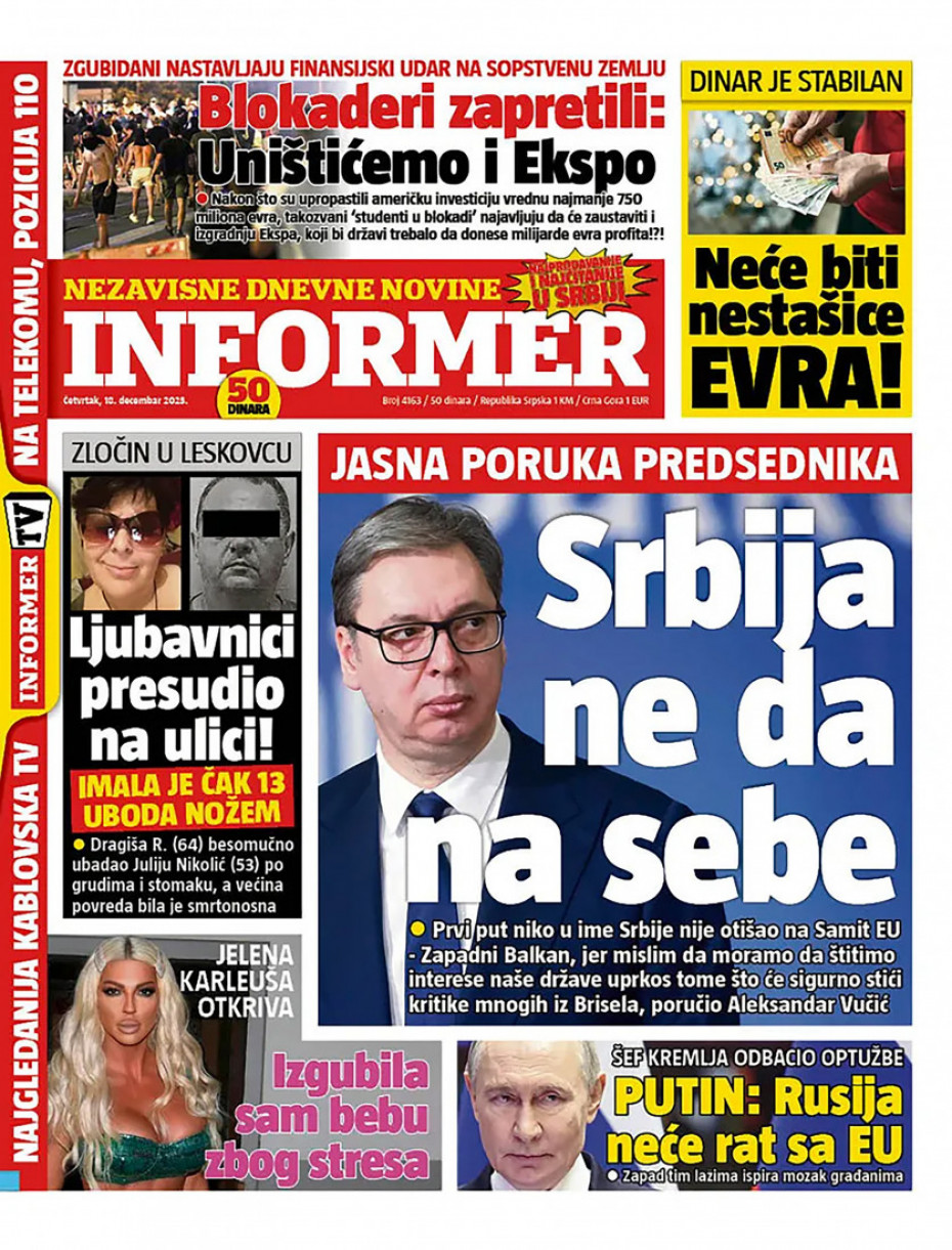 Pogledajte šta na naslovnim stranama donose dnevne novine u Srbiji u izdanju za četvrtak, 18. decembar.