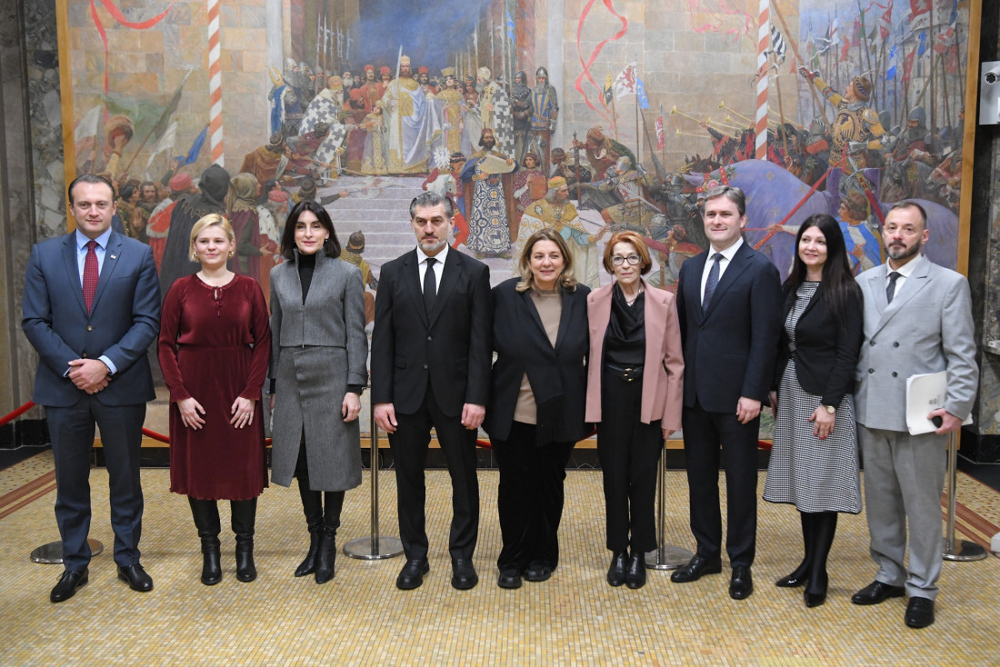 Nakon toga, delegaciji iz Gruzije, kustos i ministar Selaković predstavili su sliku "Krunisanje cara Dušana" Paje Jovanovića, jedno je od najupečatljivijih dela u stalnoj postavci Narodnog muzeja Srbije.
