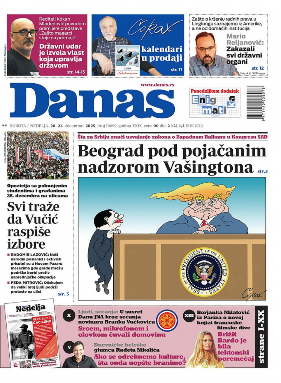 Naslovne strane dnevne štampe za subotu, 20. decembar